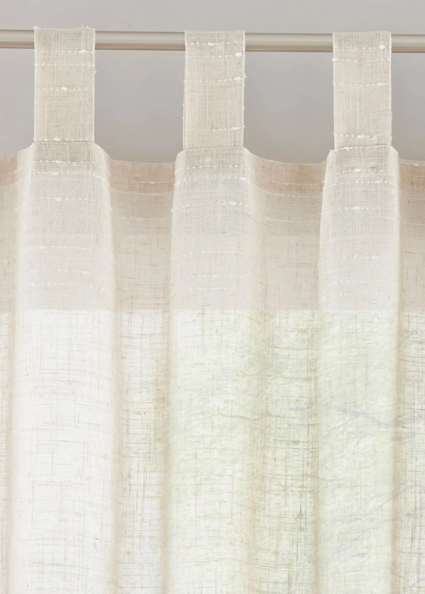 Cortina con aspecto natural. Gran aspecto natural: Nuestra cortina enamora con su aspecto de lino natural. Los espesores de color claro resaltan su gran estructura. La semitransparencia juega con la luz entrante y, al mismo tiempo, mantiene alejadas las miradas indiscretas. Nuestra cortina de fácil cuidado encaja perfectamente con diferentes conceptos de decoración.