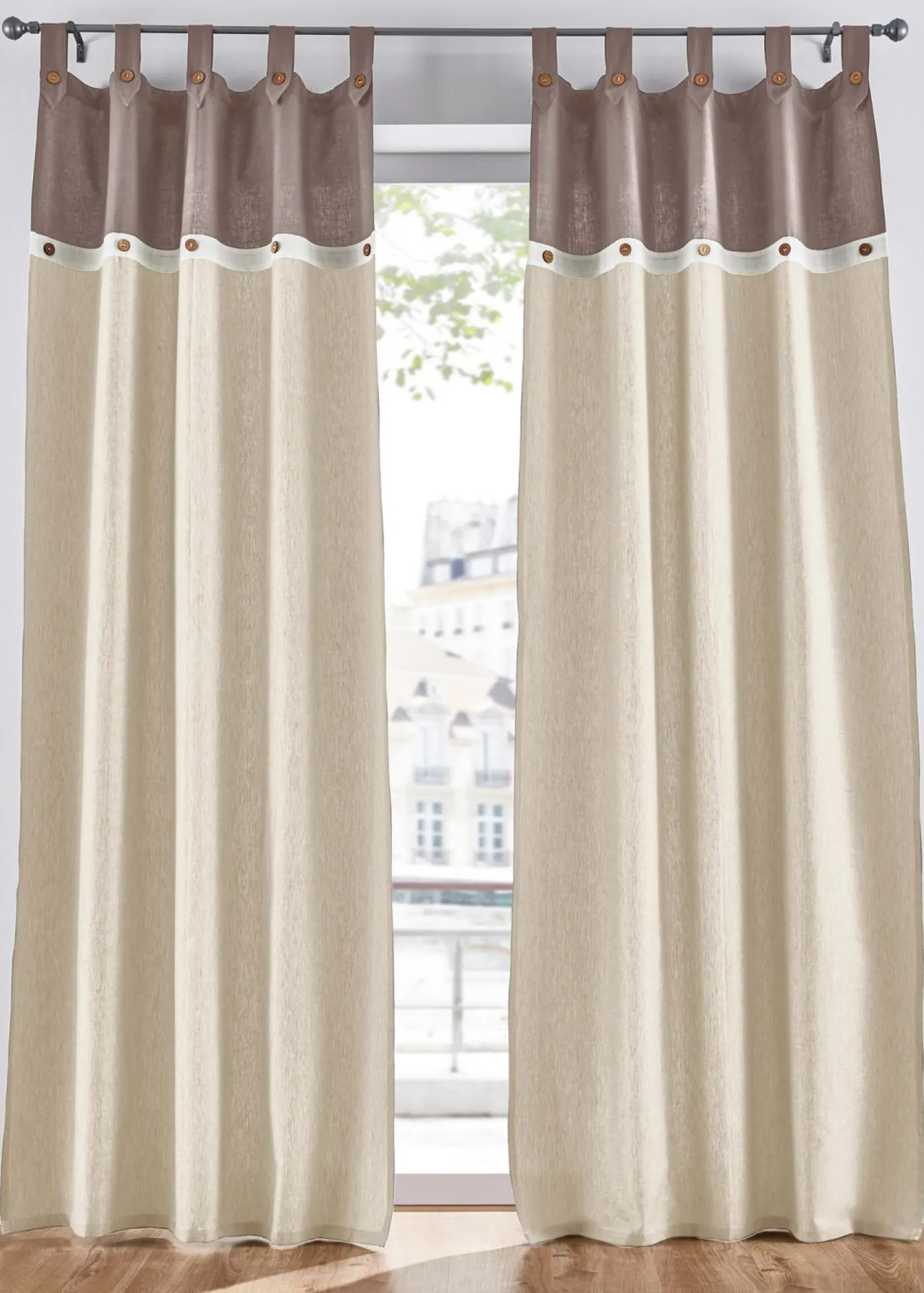Cortina de algodón y diseño moderno con botones. La cortina aporta un ambiente natural y hogareño a tus estancias. La elección de colores es elegante y, por tanto, combina con muchos estilos. Un detalle especial son los botones decorativos cosidos con aspecto de madera, que completan perfectamente el aspecto natural de la cortina y la hacen simplemente perfecta para aquellos que aman la naturaleza y valoran la buena calidad.