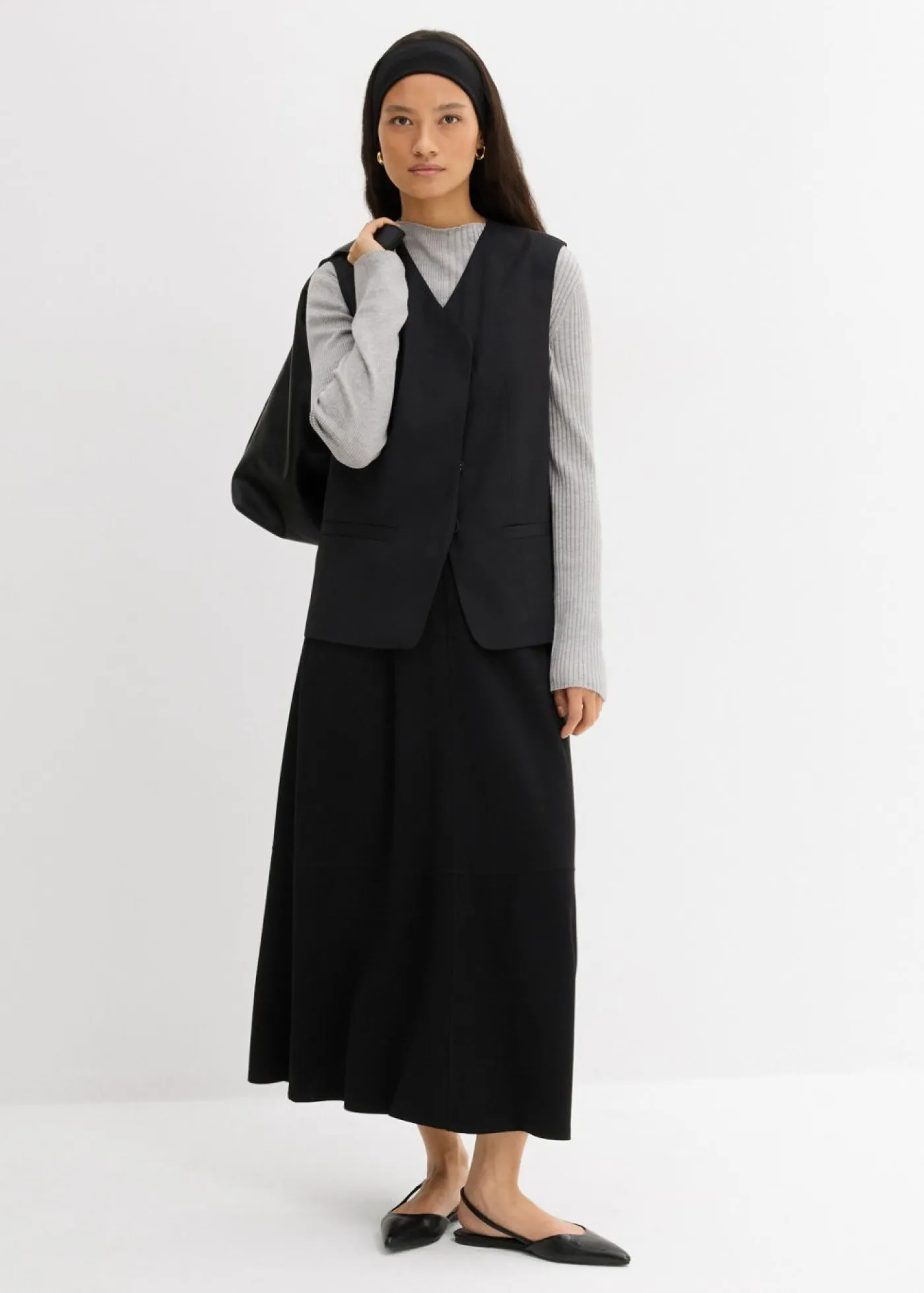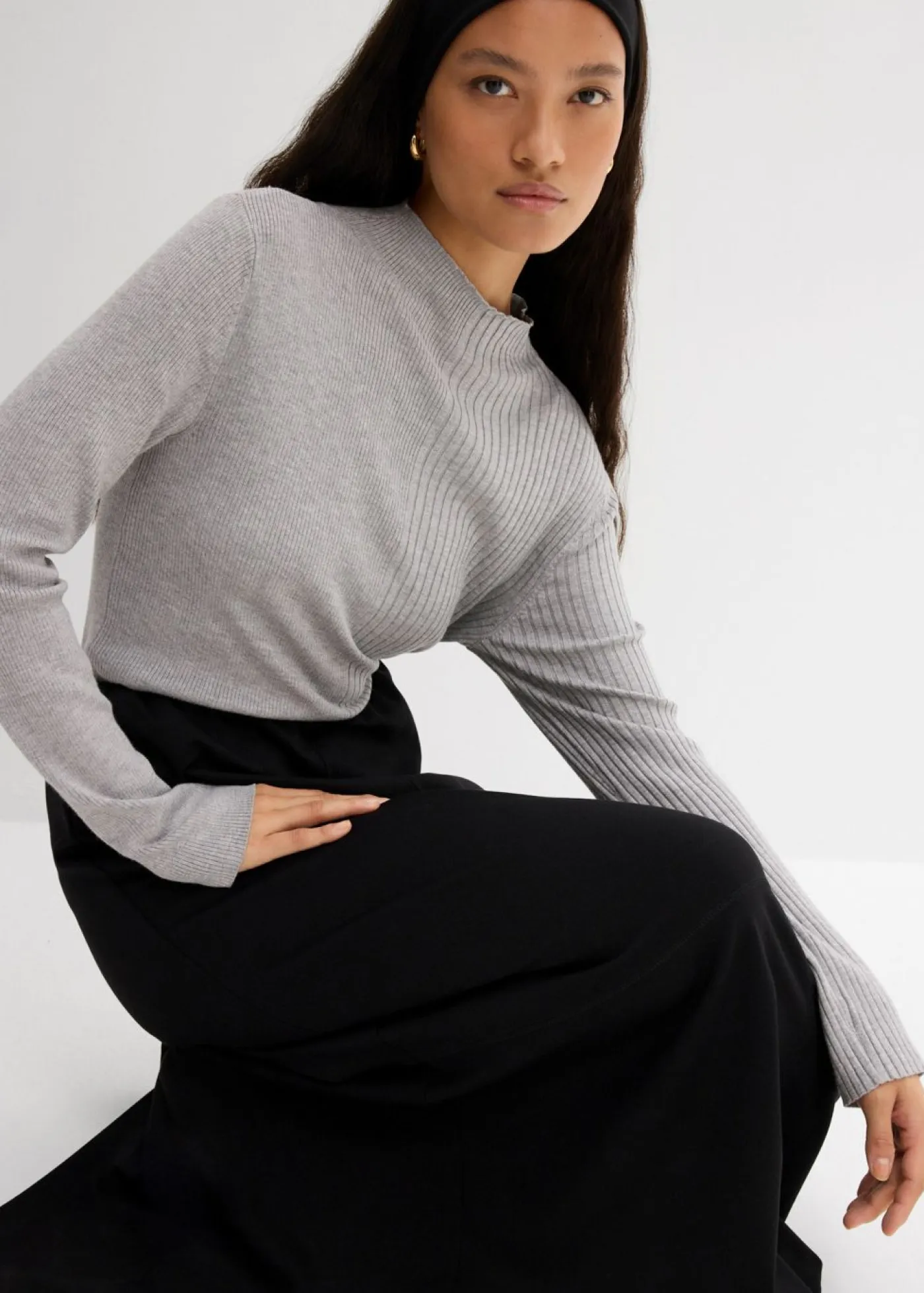 Camiseta ajustada de punto de canalé con manga larga y cuello vuelto.