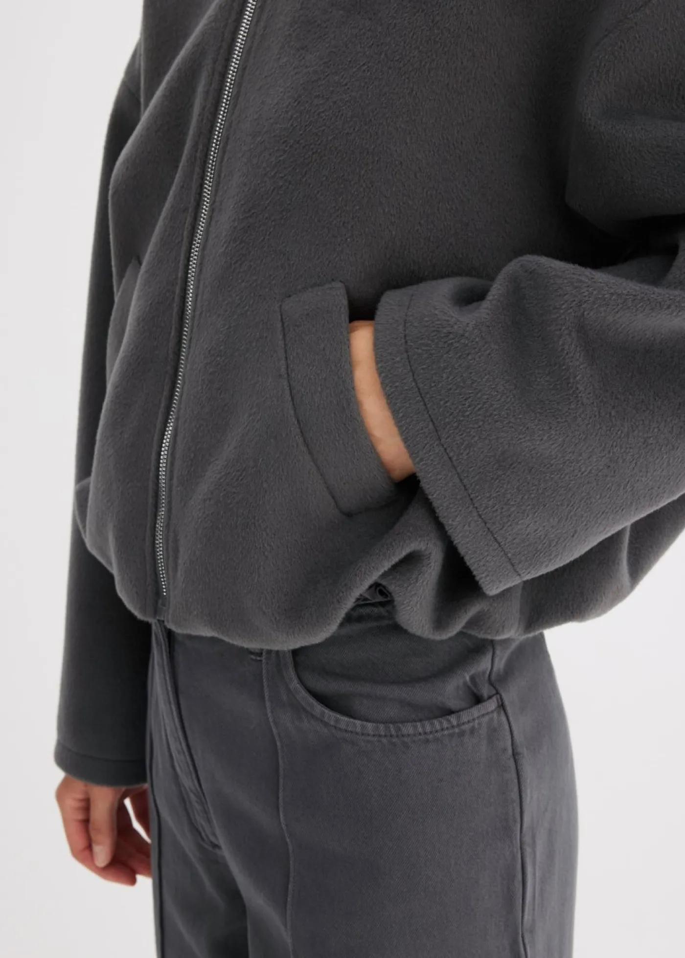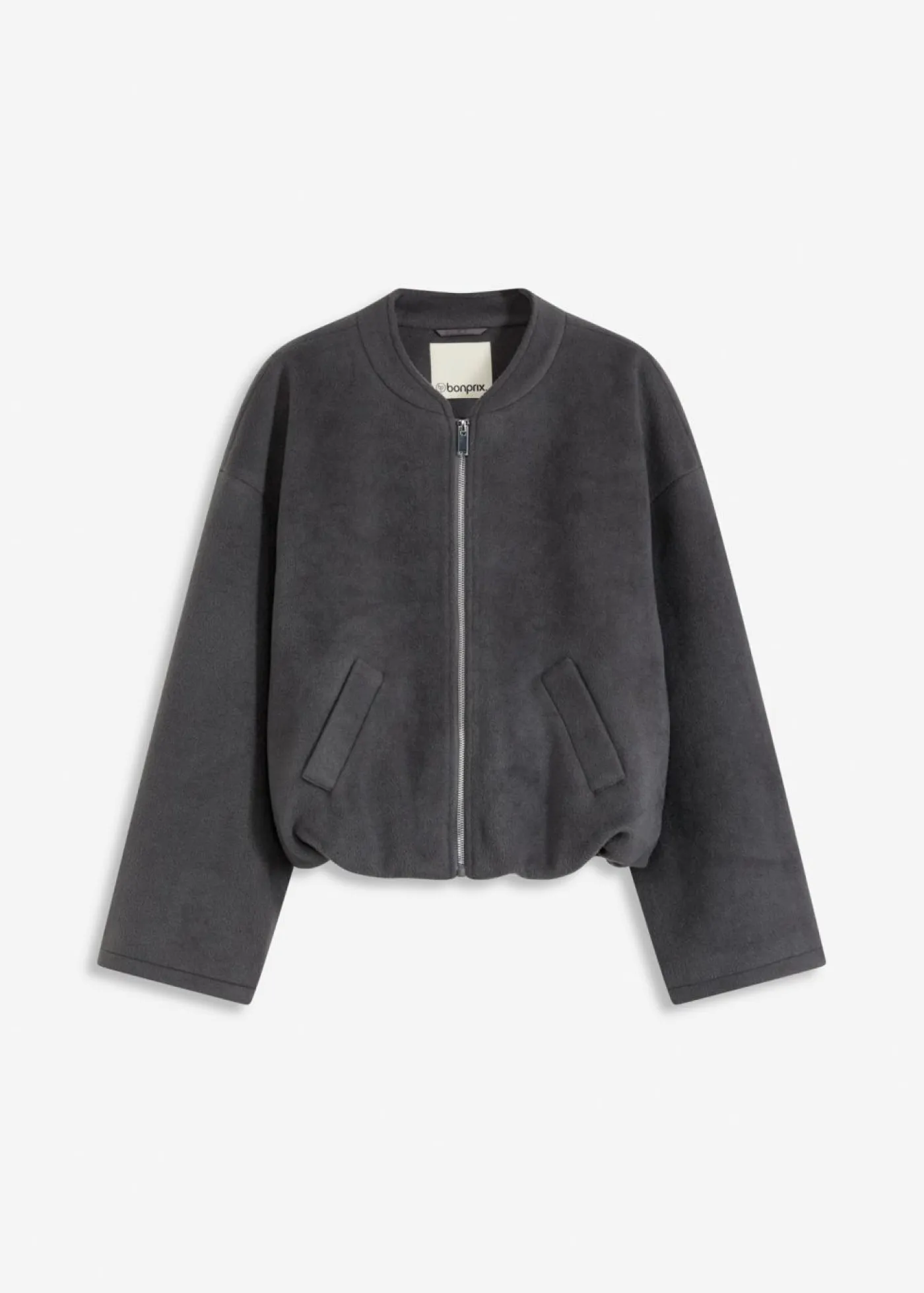 Blusón con cuello béisbol, bolsillos oblicuos y dobladillo abullonado.