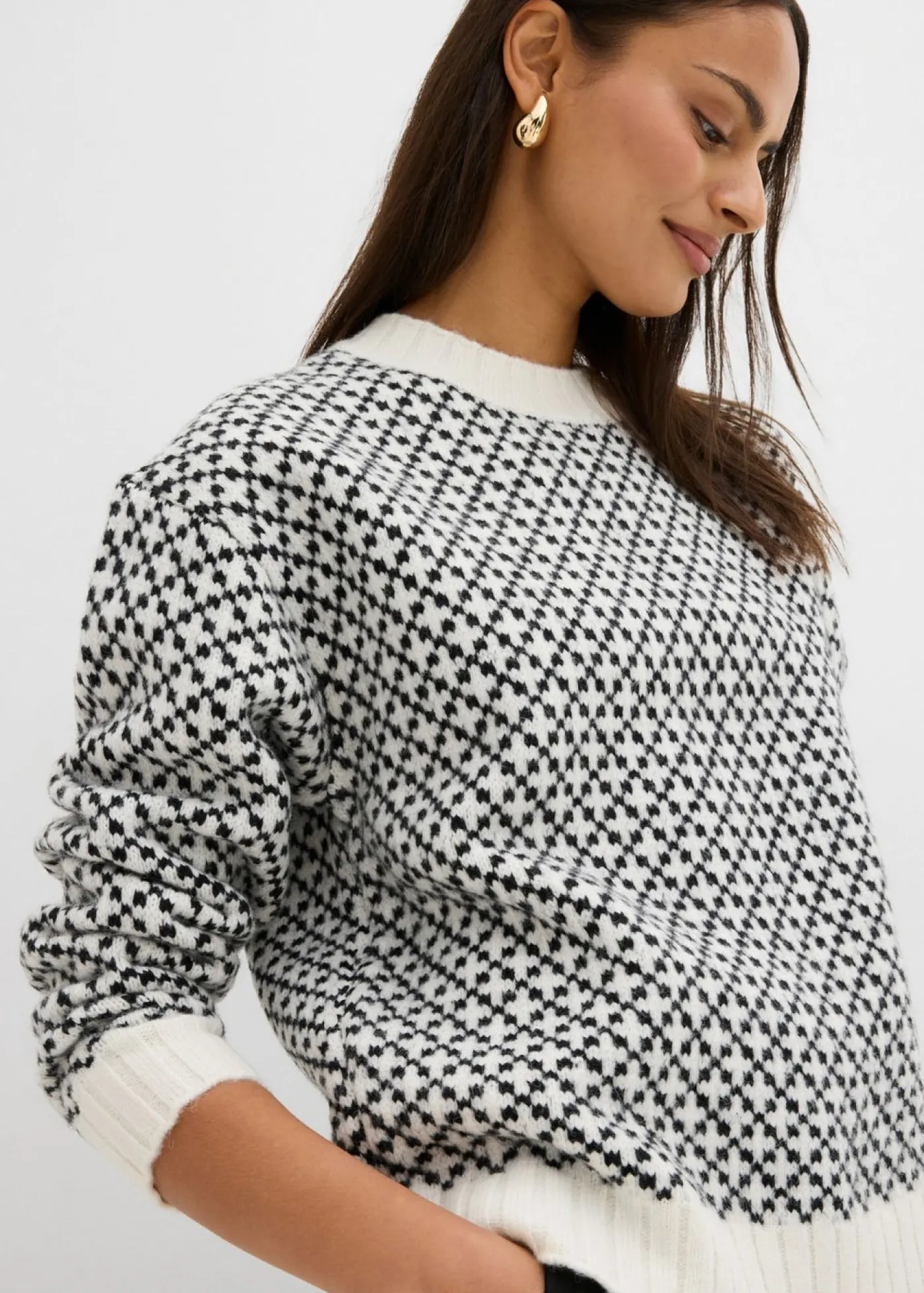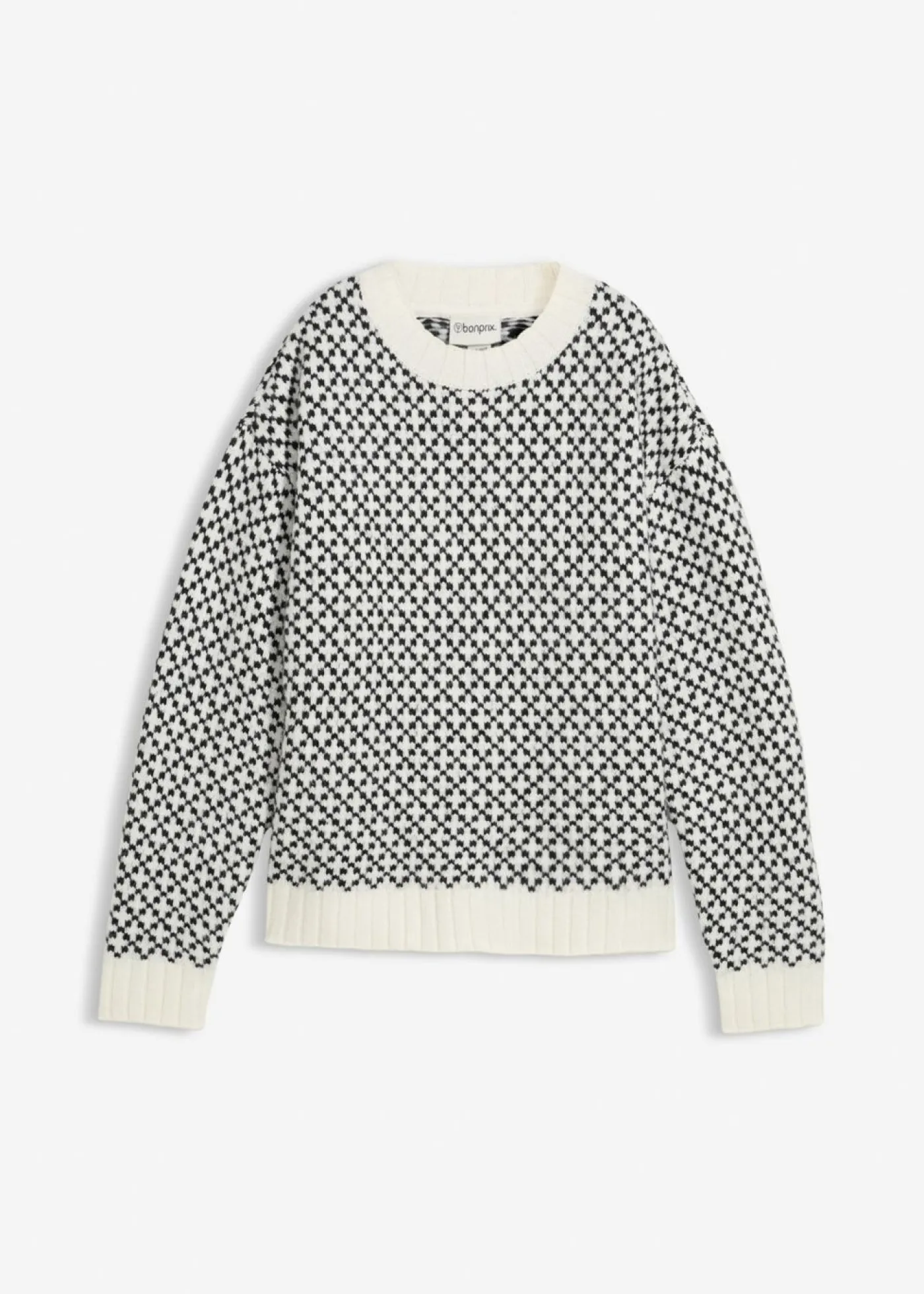 Jersey con cuello redondo, ribetes acanalados y corte holgado.