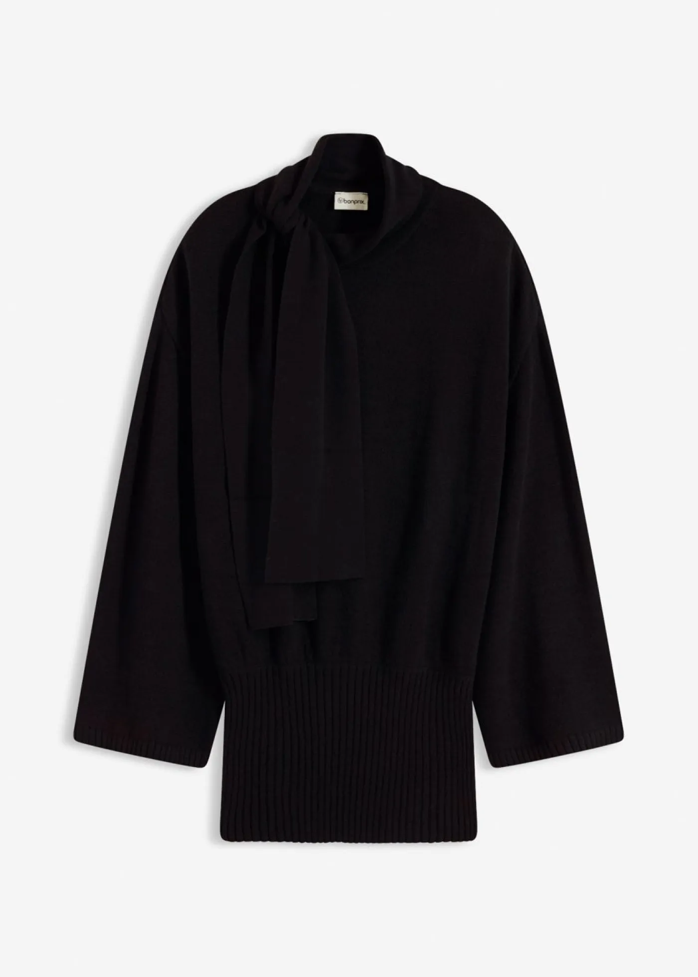 Jersey holgado con cinturilla ancha de canalé y detalle de bufanda en el cuello.