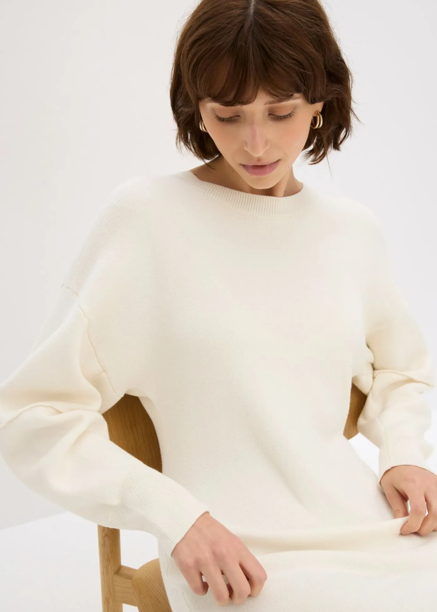 Vestido midi entallado de punto con mangas voluminosas y corte regular.