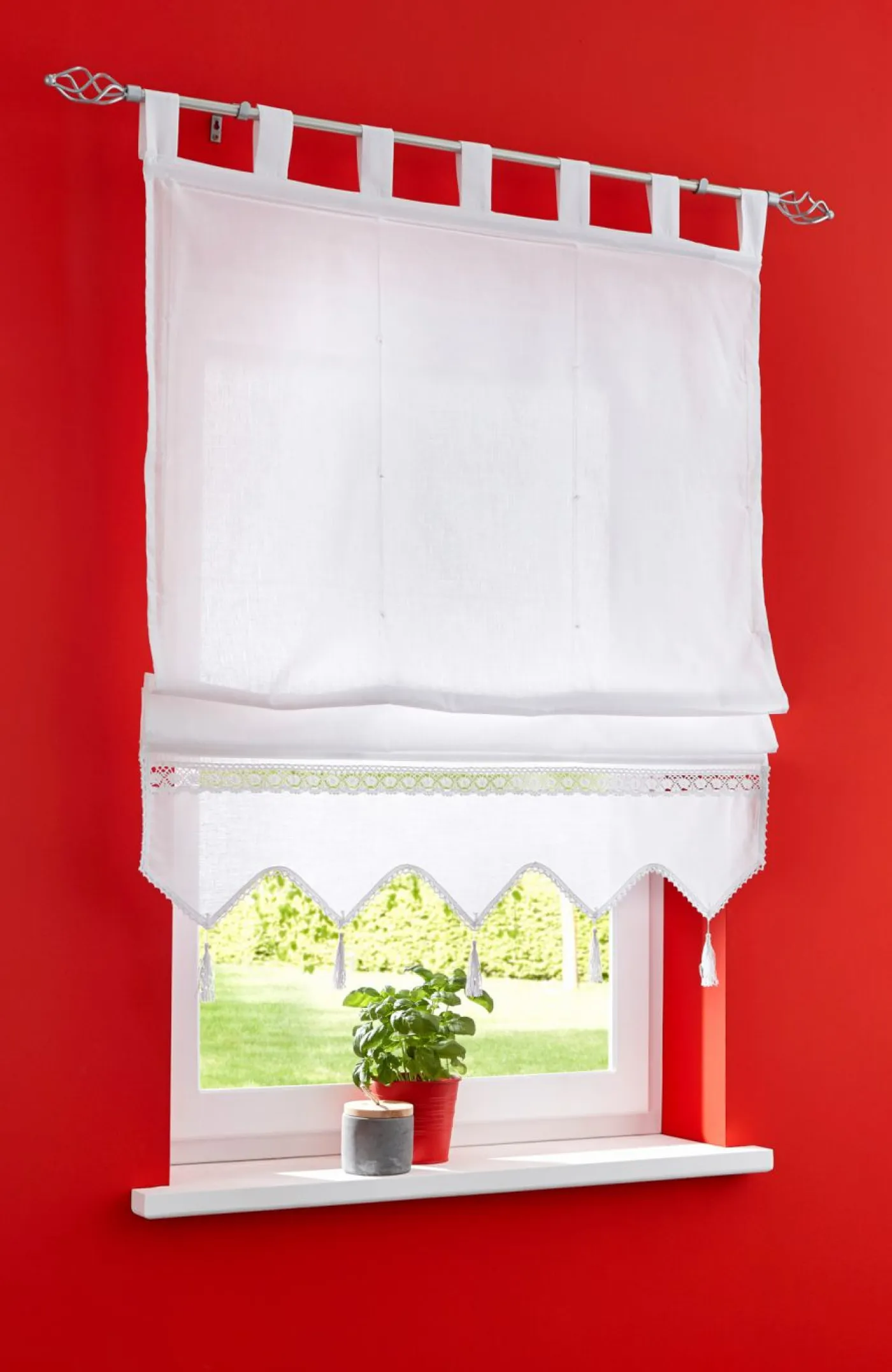 Persiana romana con borde de ganchillo, trabillas