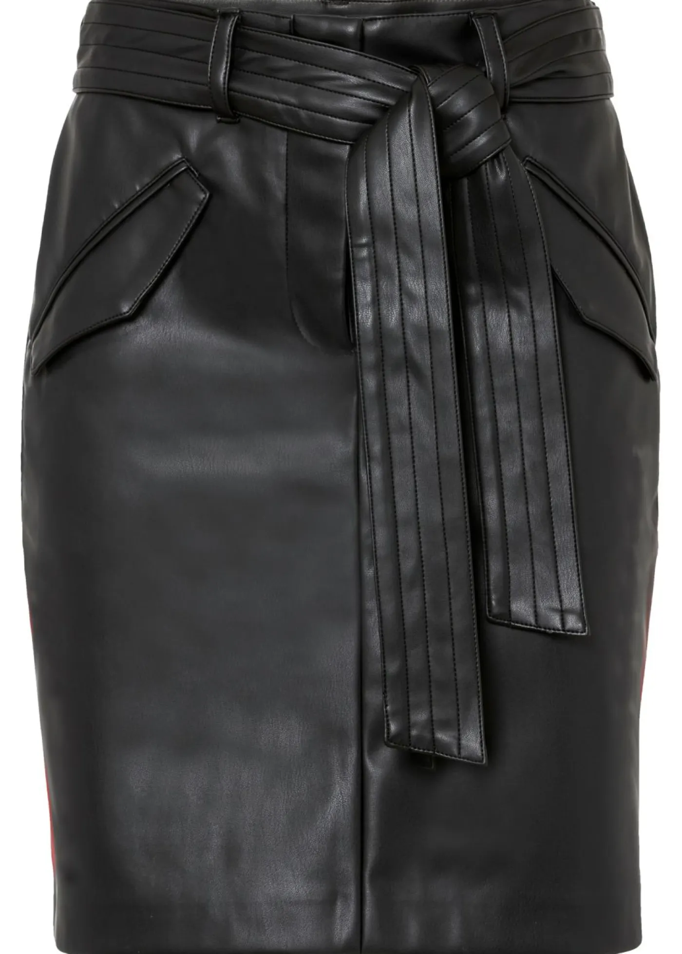 Falda moderna con cinturón de piel sintética.