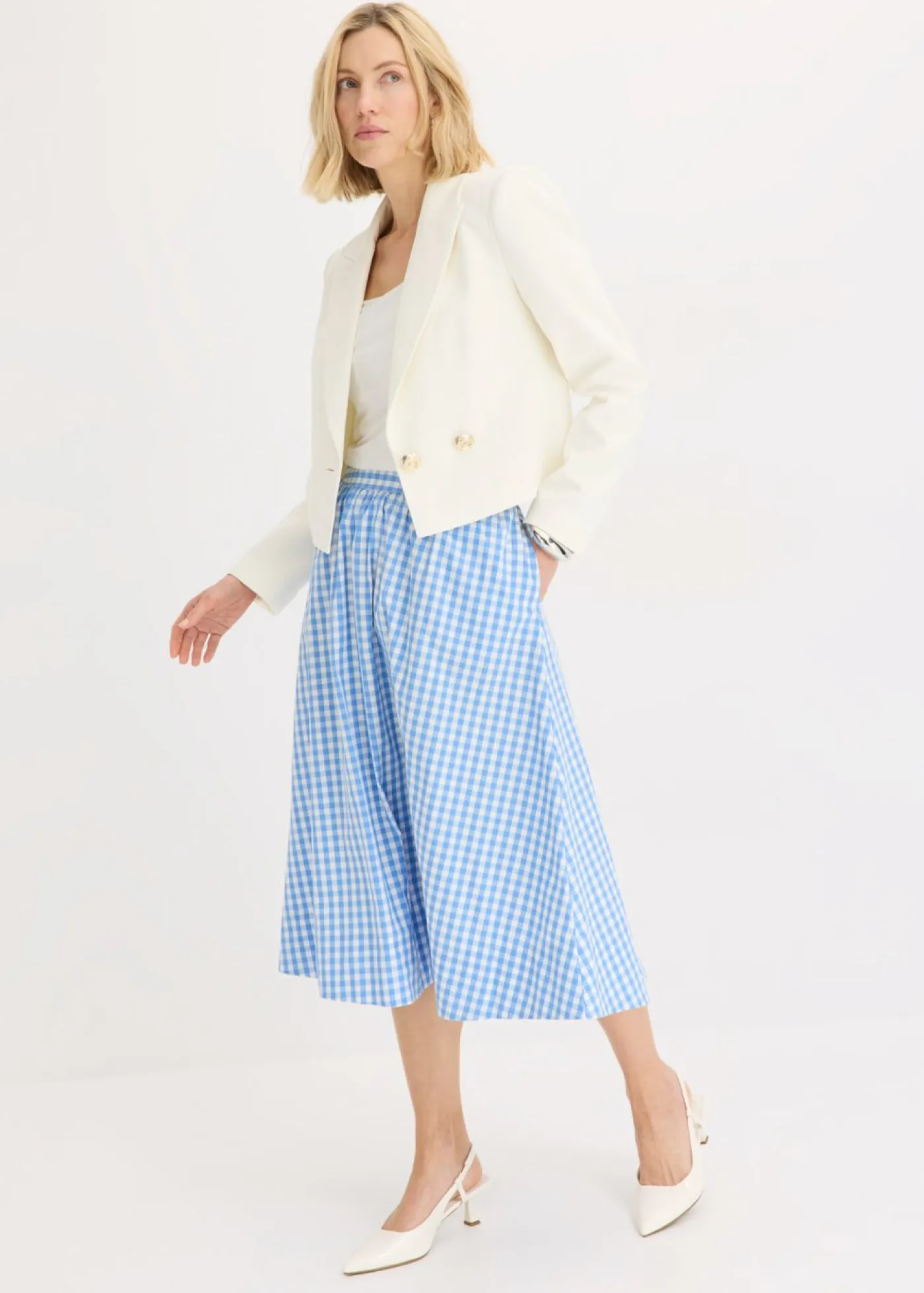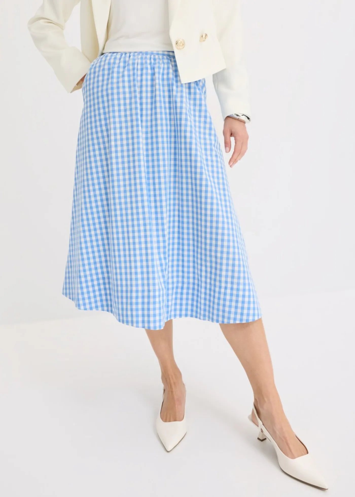 Elegante falda de cuadros vichy y corte acampanado.