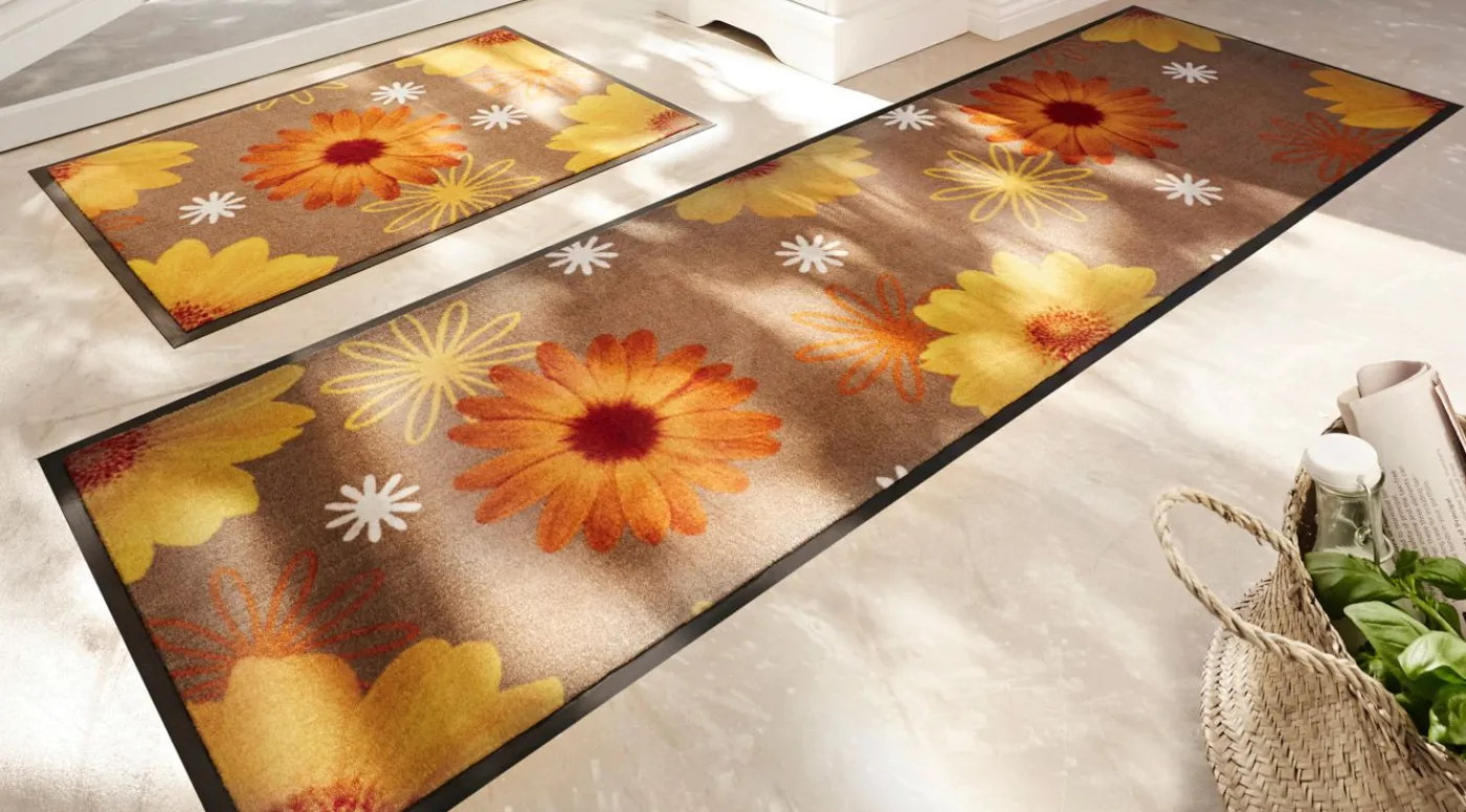 Felpudo con motivo floral para un toque acogedor. Este romántico felpudo presenta un estampado con motivos florales. ¡El verano llega a casa! Este felpudo no solo añade un toque acogedor a cualquier vestíbulo o entrada, sino que también puede utilizarse en la cocina. El felpudo puede lavarse para que todo el mundo pueda disfrutar de este felpudo resistente durante mucho más tiempo. Presenta un borde negro en todo el contorno y la parte posterior del felpudo está recubierta de vinilo para que no resbale. La talla 1, la talla 2 y la talla 4 se suministran enrolladas. La talla 3 se suministra plegada.