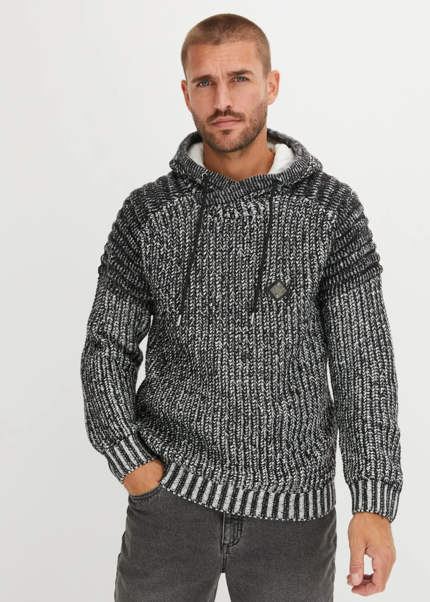 Jersey de punto grueso con capucha y detalles moteros
