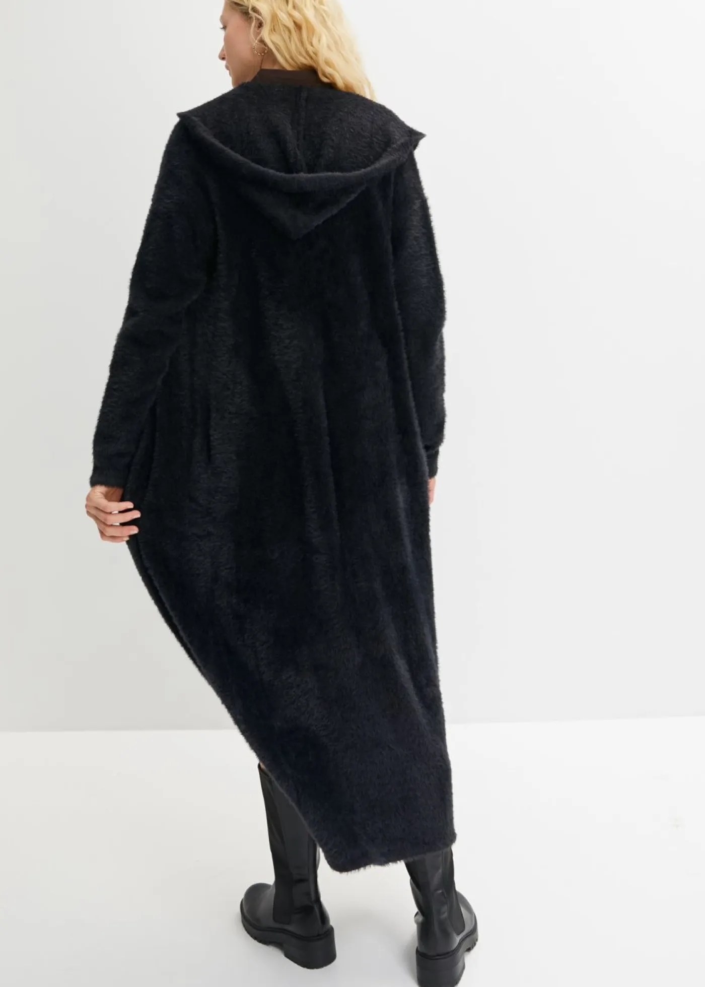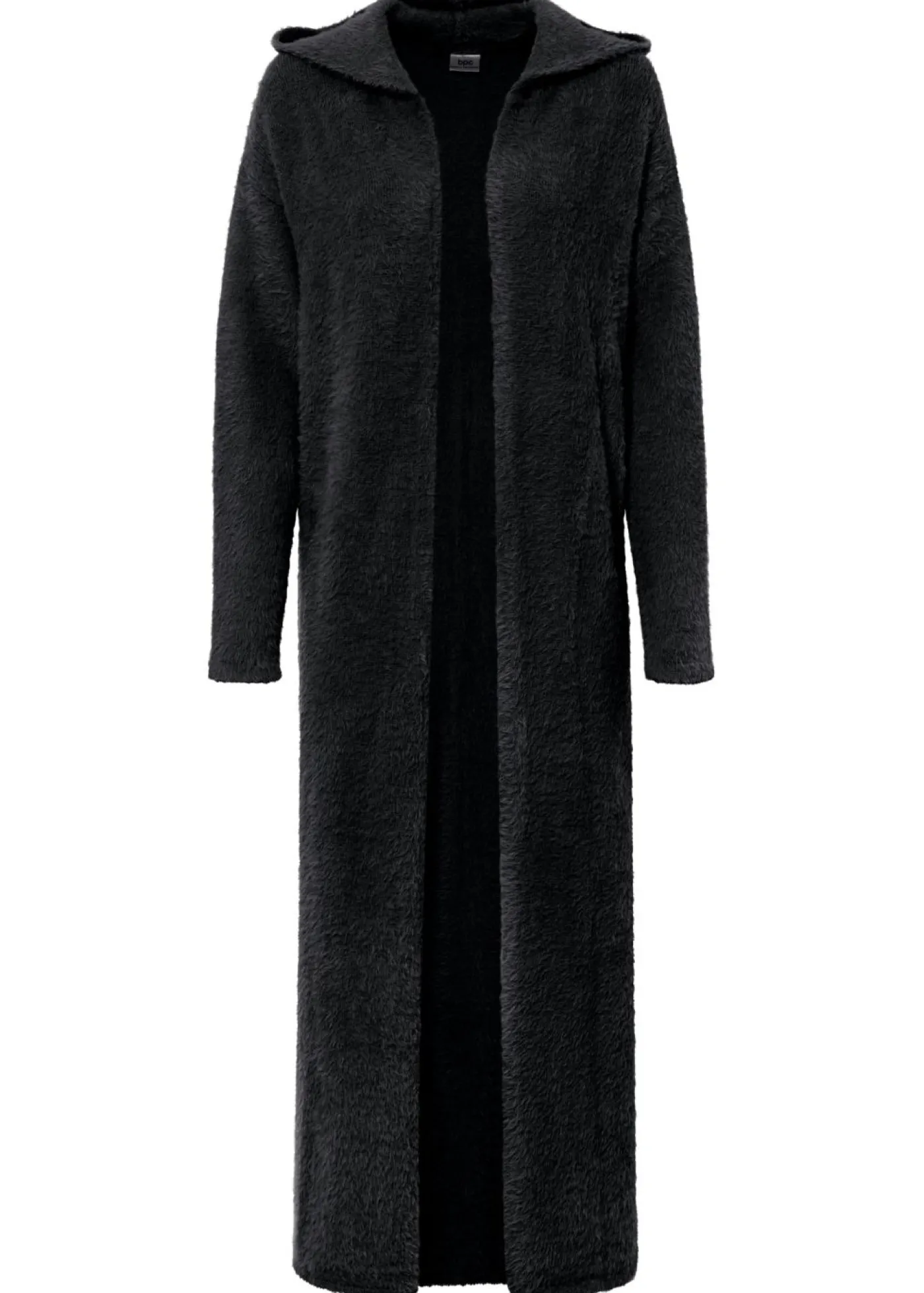 Abrigo largo de punto con capucha con viscosa. Largo de aprox. 114 cm en talla 40/42. Se puede lavar a máquina.