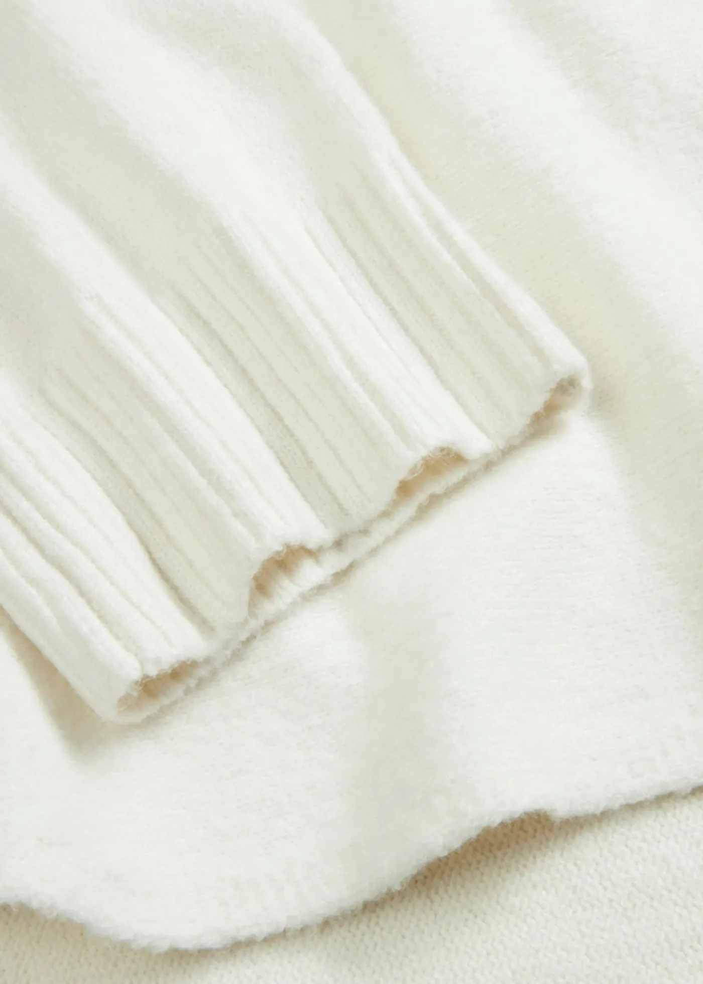 Moderno jersey con cuello alto, dobladillo redondeado y mangas anchas.