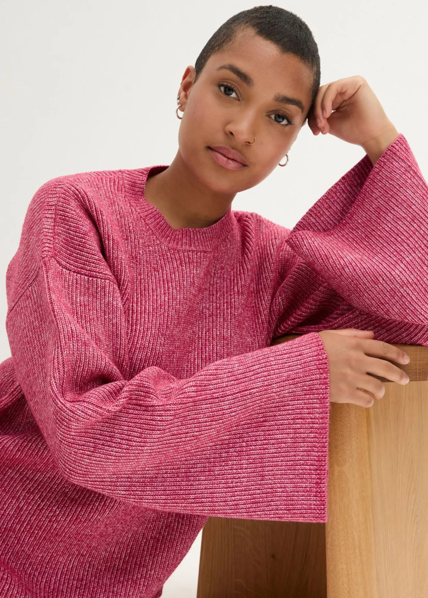 Favorecedor jersey tipo boxy de punto de canalé fino.
