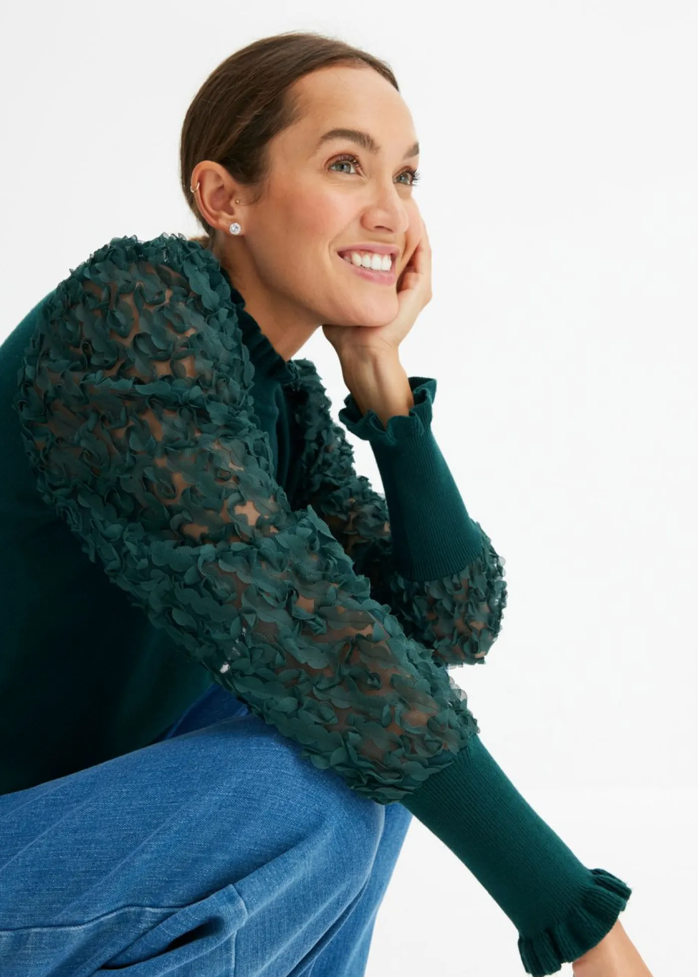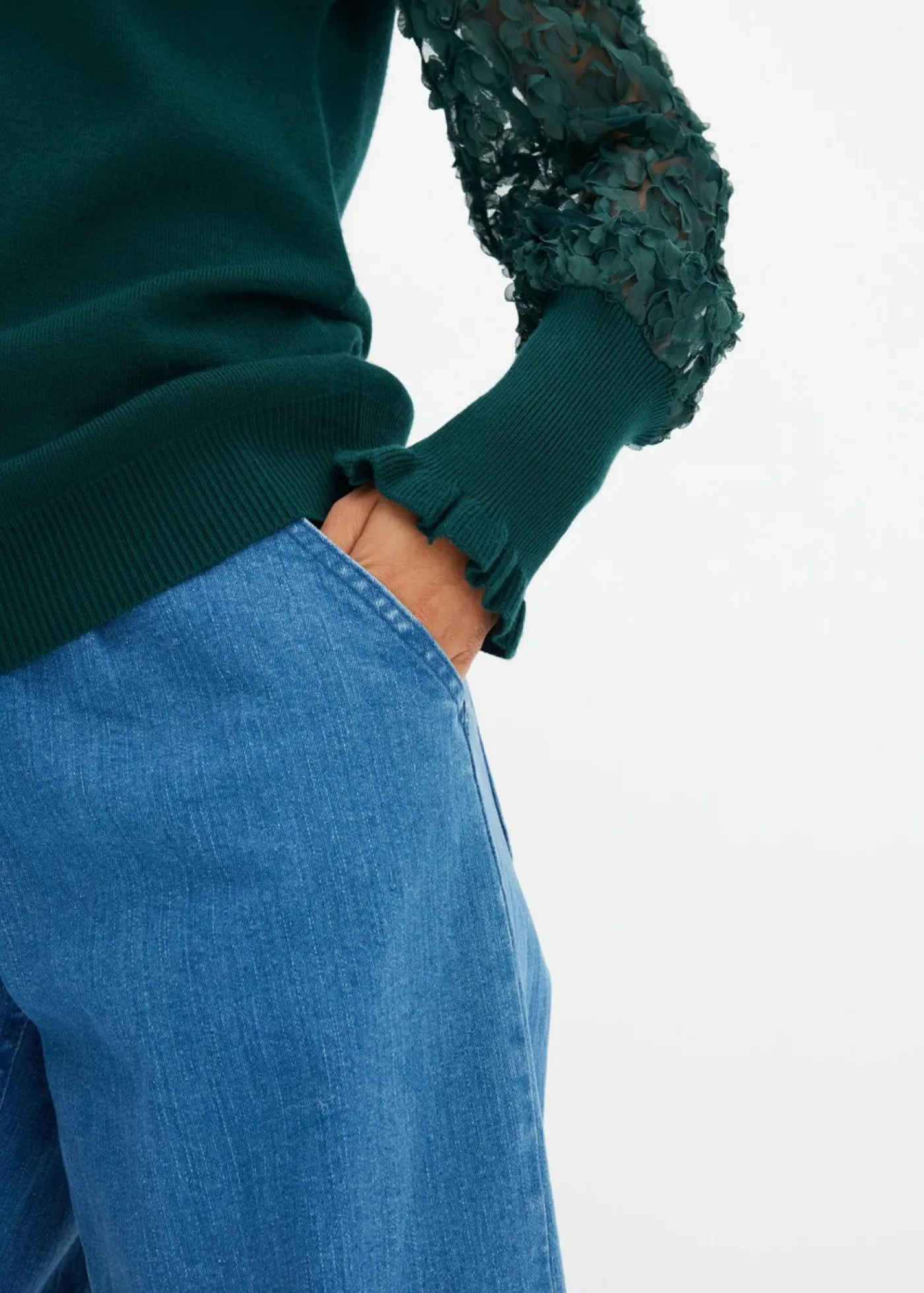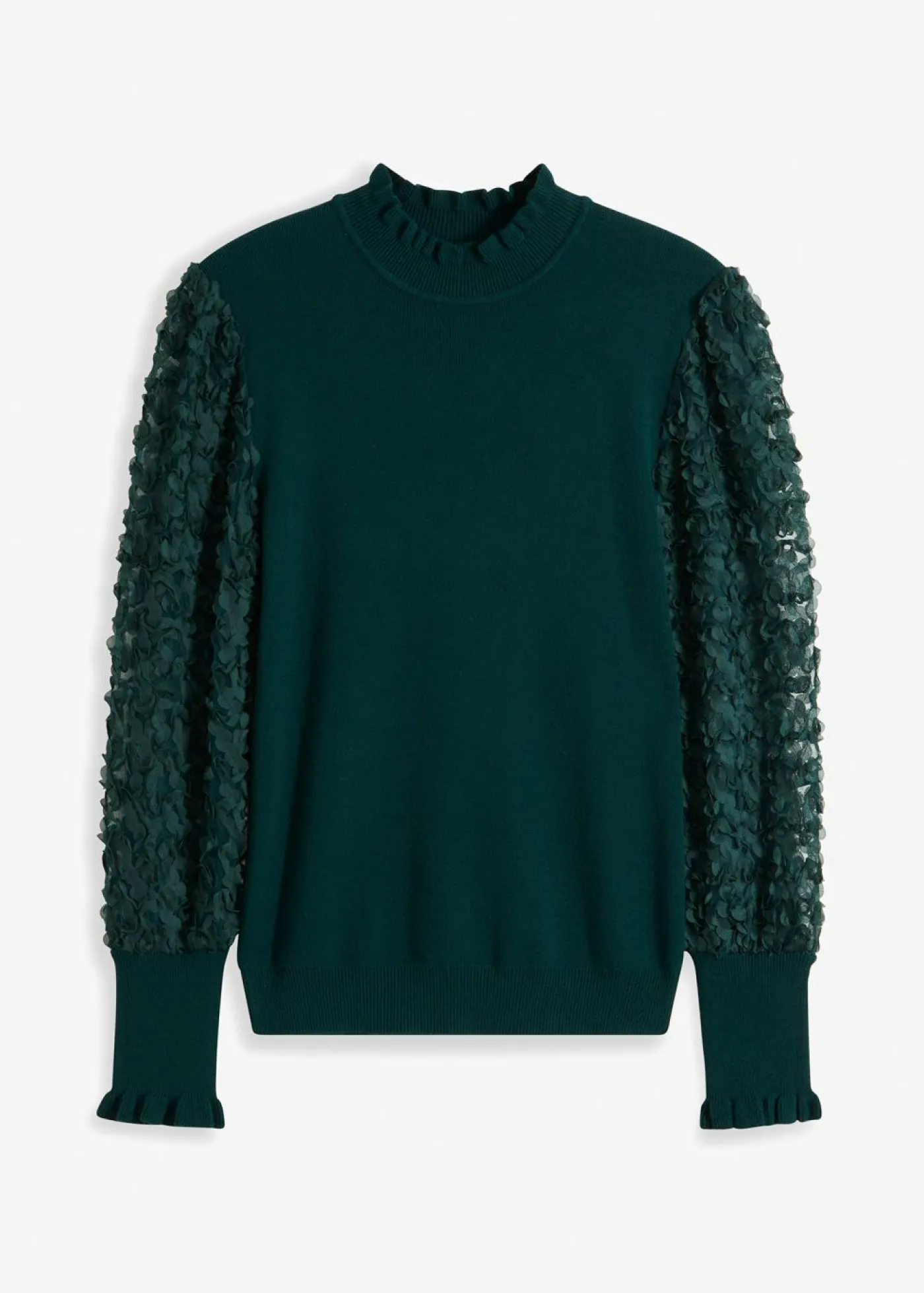 Jersey de cuello vuelto con mangas decorativas de gasa
