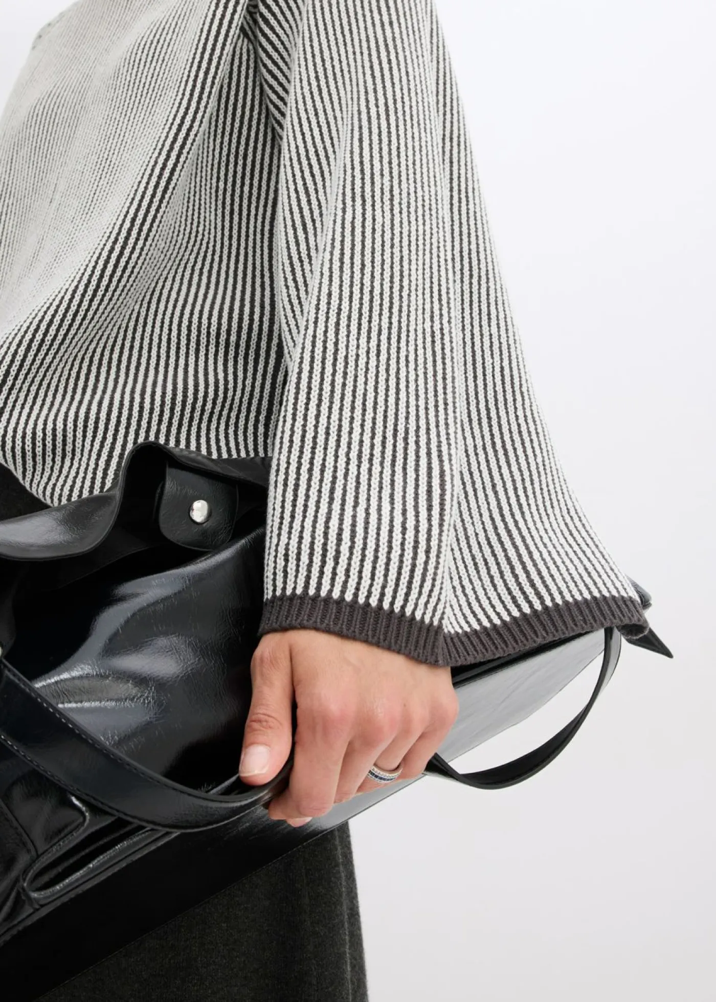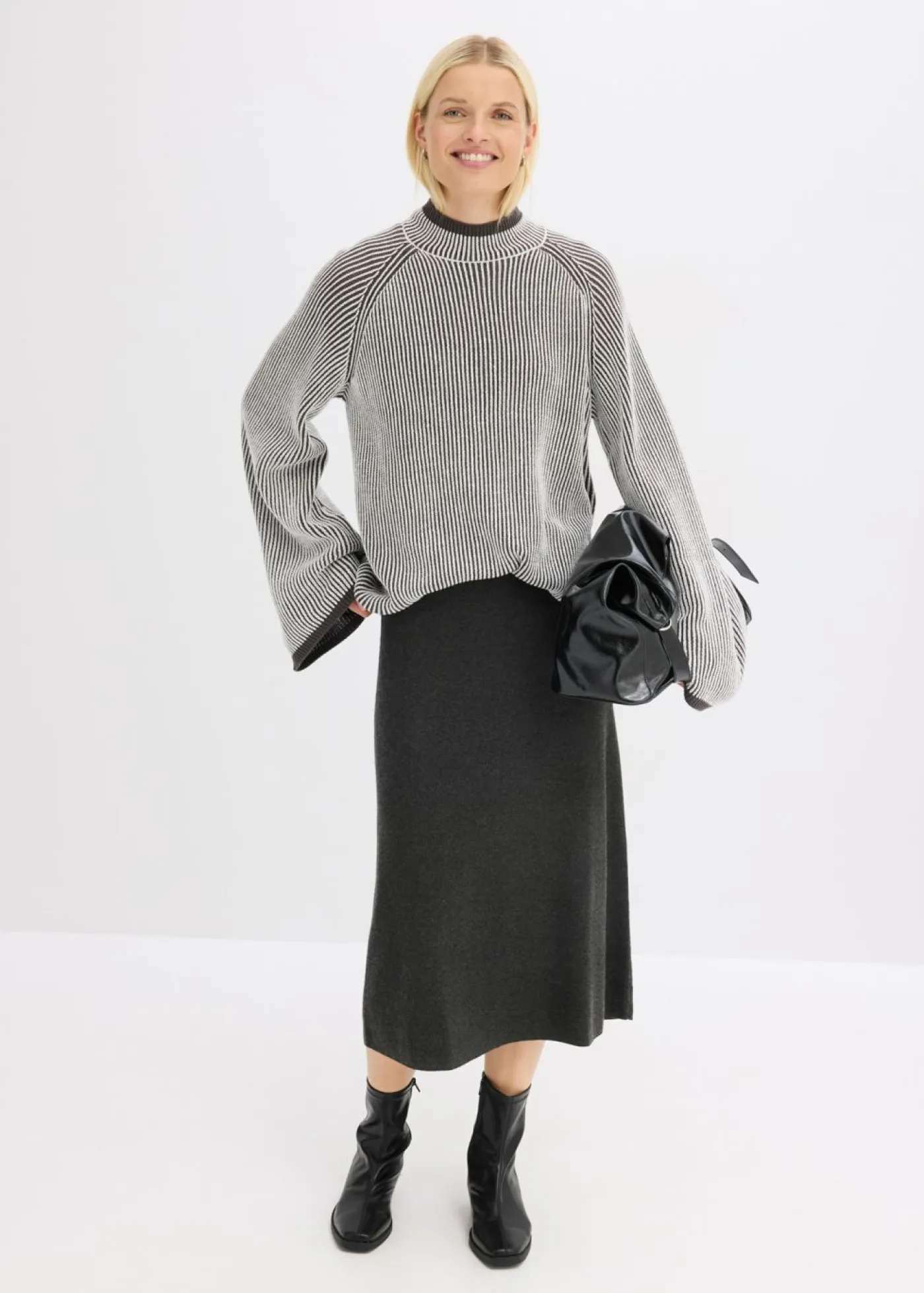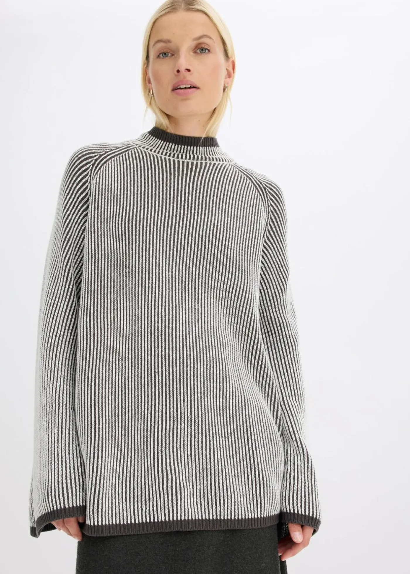 Jersey holgado de punto grueso con cuello alto y diseño de rayas.