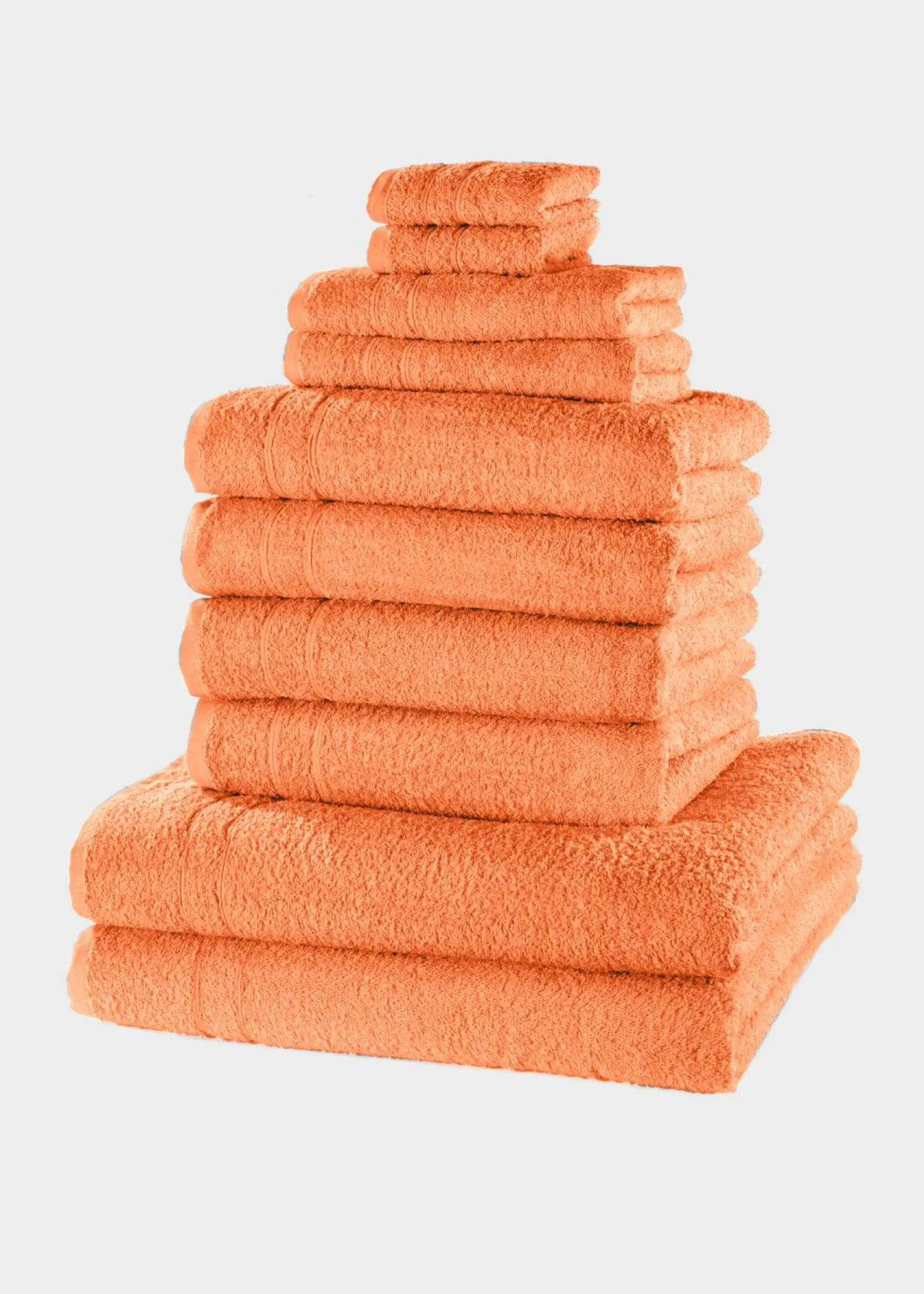 Juego de toallas absorbentes (10 piezas) en colores alegres. Suavidad en el baño: ¡te encantará el juego de toallas de 10 piezas! Los colores varían de sutiles a intensos. El uso de algodón puro garantiza una agradable sensación de suavidad en la piel y un buen efecto de secado. El juego incluye 2 paños (de 30/30 cm cada uno), 2 toallas para invitados (de 30/50 cm cada una), 4 toallas de mano (de 50/100 cm cada una) y 2 toallas de ducha (de 70/140 cm cada una). La hora del baño será un placer.