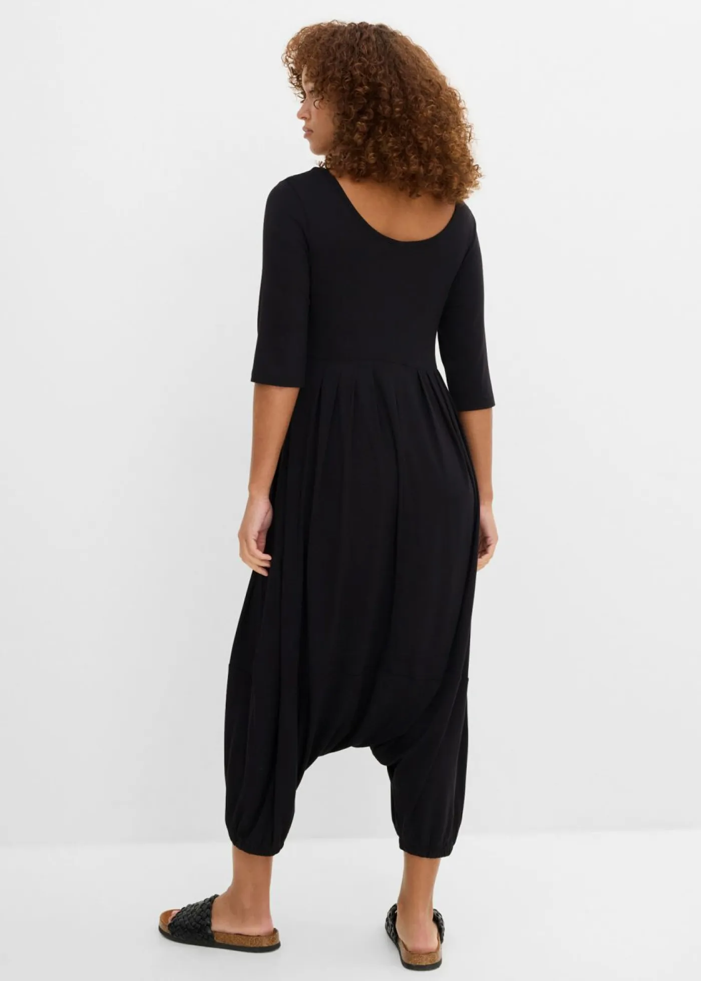 Moderno mono con pantalón bombacho y cuello redondo confeccionado en viscosa sostenible. Largo de aprox. 86 cm en talla 40/42. Se puede lavar a máquina.