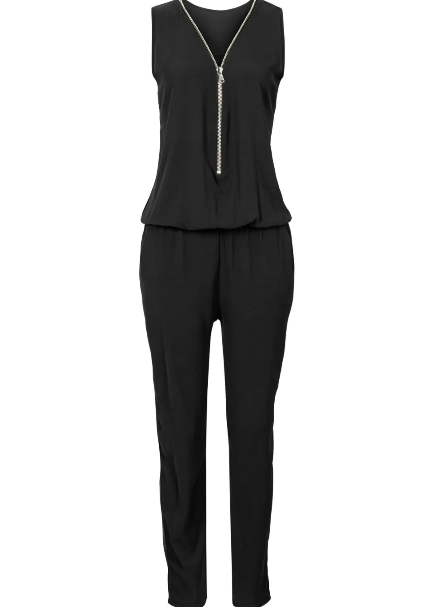 Encantador mono con cintura elástica. Mono extremadamente moderno con cremallera elegante en el escote. Parte superior holgada. Una cinturilla elástica enfatiza la silueta y los bolsillos laterales completan su aspecto casual. ¡Imprescindible para todos aquellos que marcan tendencia! Largo interior de la pierna de aprox. 71,5 cm en talla 38.