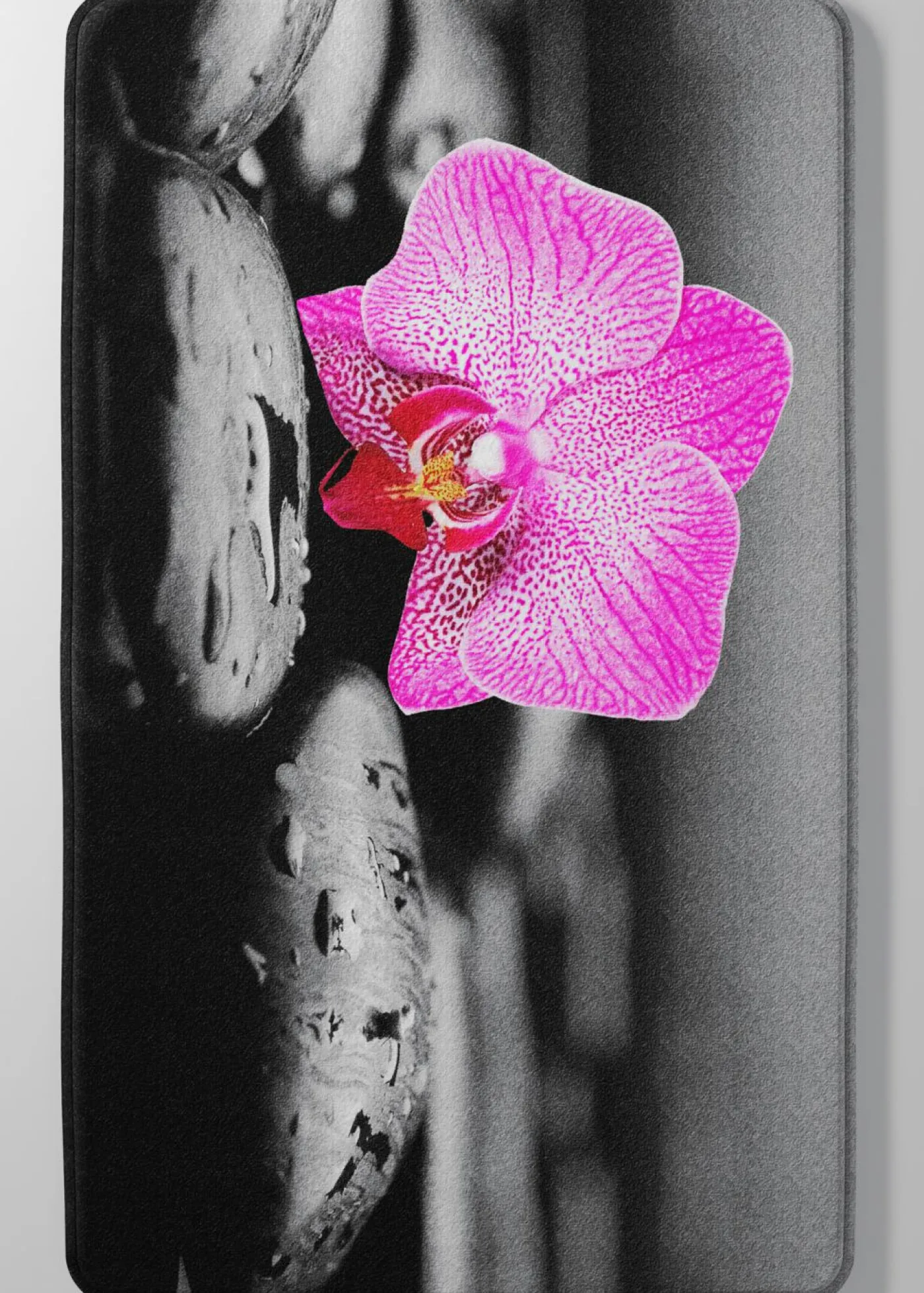 Alfombra de baño con motivos florales y estilo wellness. Con este conjunto de baño estampado, cualquier cuarto de baño parecerá un oasis de bienestar. Supersuave y de secado rápido, con espuma viscoelástica. Extremadamente absorbente.