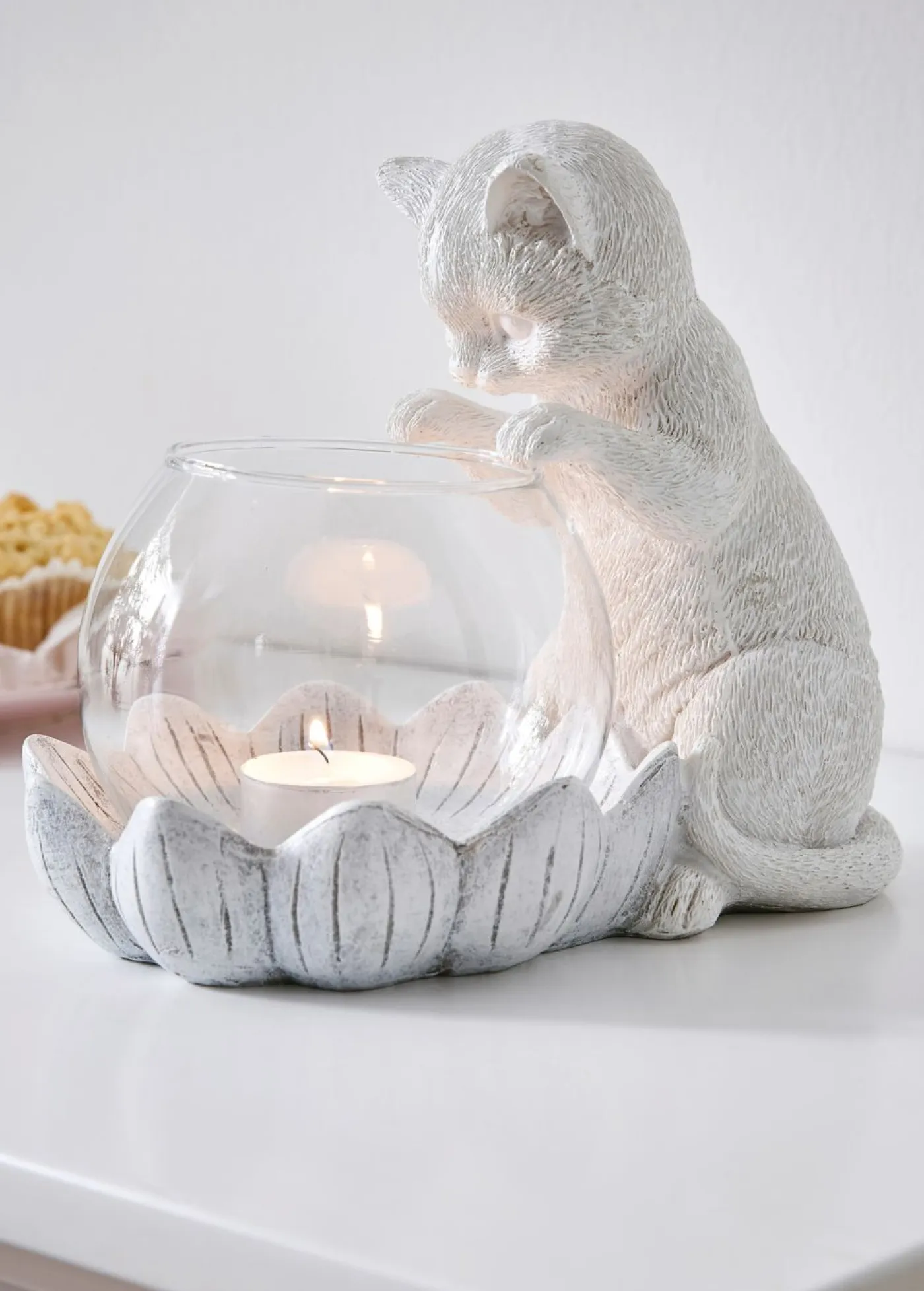 Lo más destacado para todos los amantes de los gatos: portavelas con gran inserto de vidrio. Portavelas con inserto de vidrio grande para velas de té o velas pequeñas. Un artículo imprescindible para todos los amantes de los gatos.