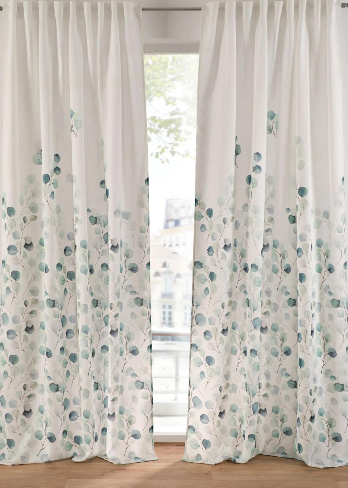 Cortina con estampado floral.