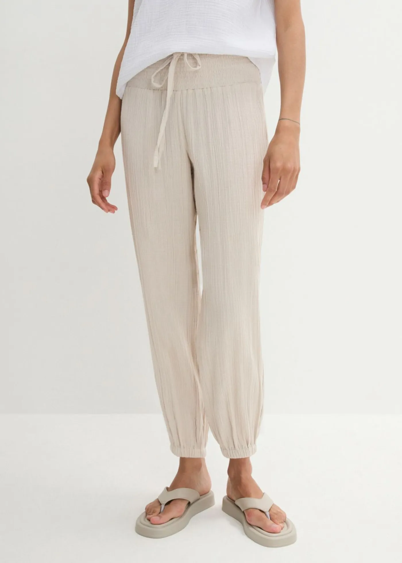 Cómodo pantalón de muselina con cinturilla ancha. Largo interior de la pierna de aprox. 66 cm en talla 42. Se puede lavar a máquina.