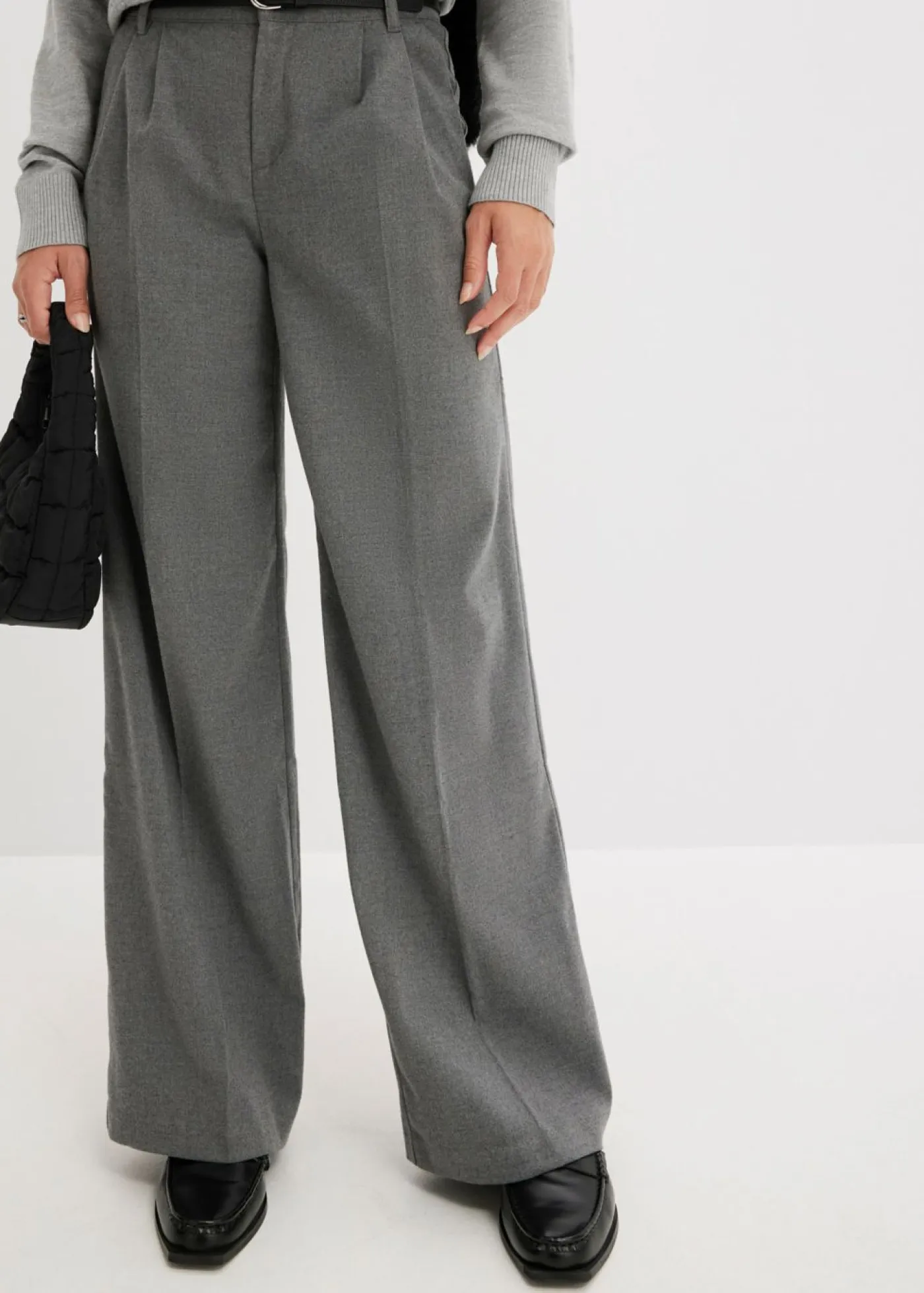 Pantalón informal con pliegues y perneras anchas.