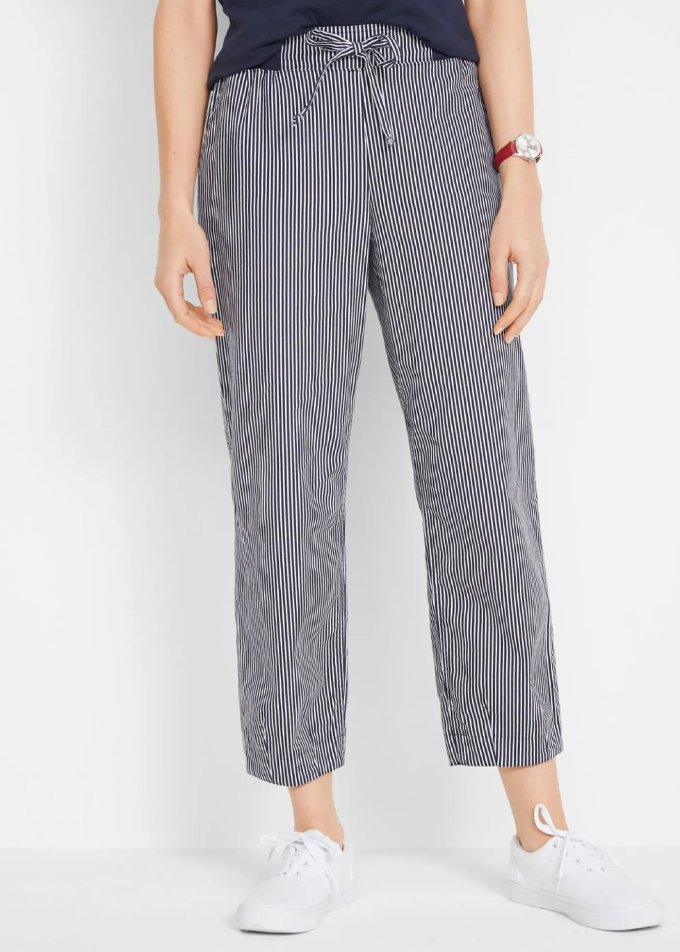 Cómodo pantalón de mezcla de lino con cinturón y tiro alto. Largo de la pierna de aprox. 65 cm en talla 42. Se puede lavar a máquina.