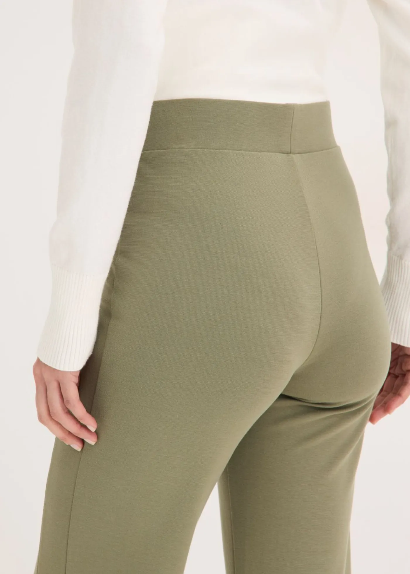 Elegante pantalón de punto con botones decorativos en la pernera.