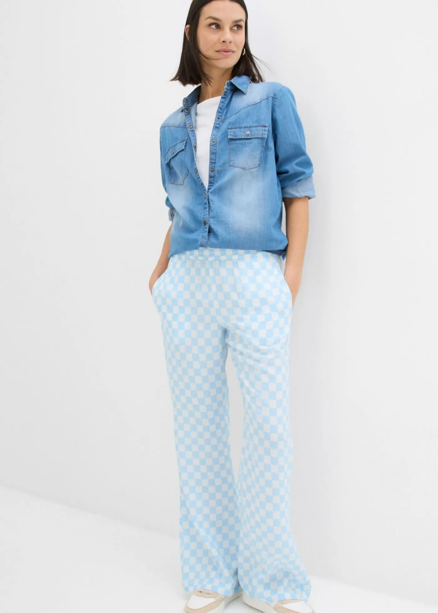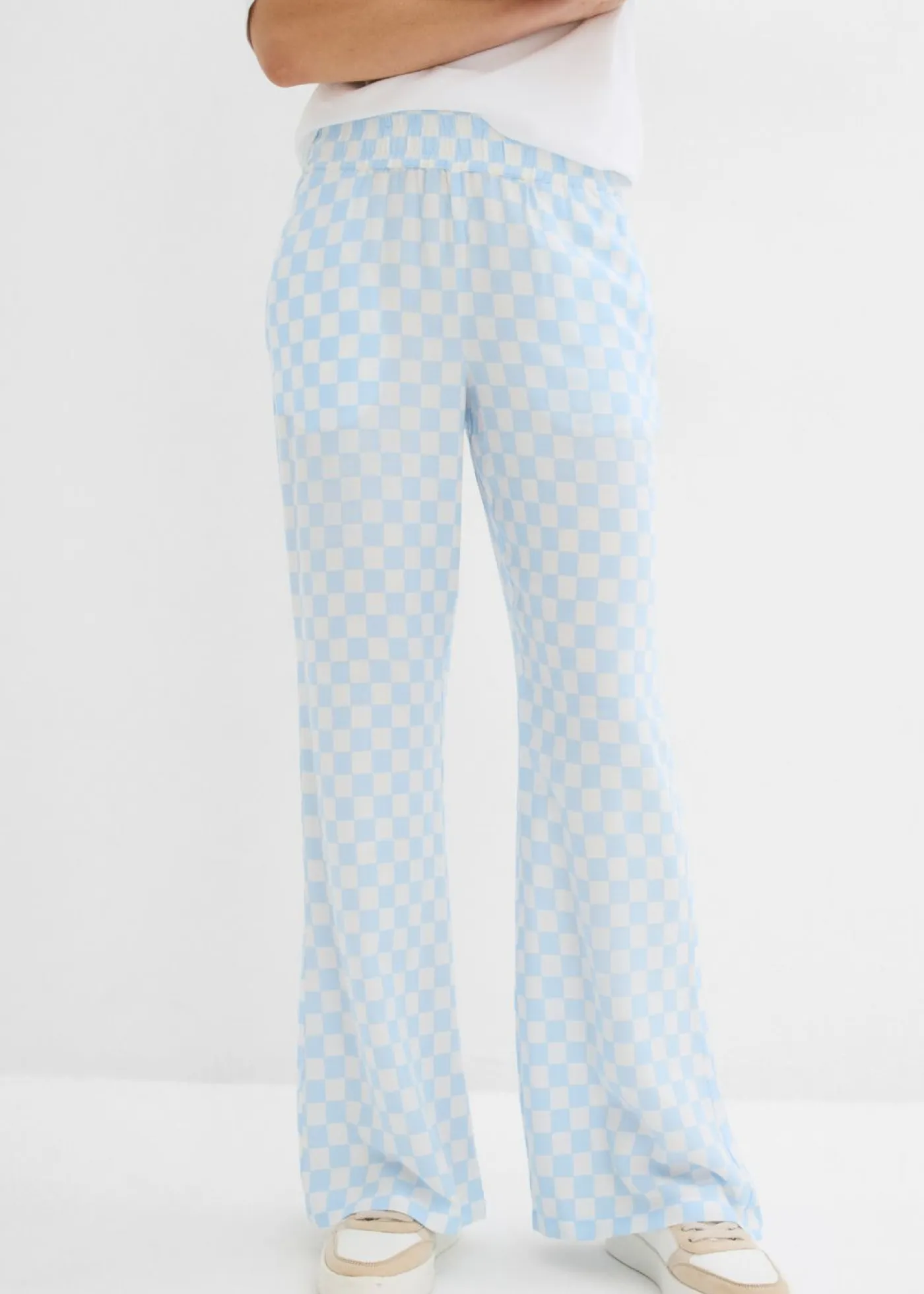 Pantalón Marlene de viscosa fluida con estampado de cuadros