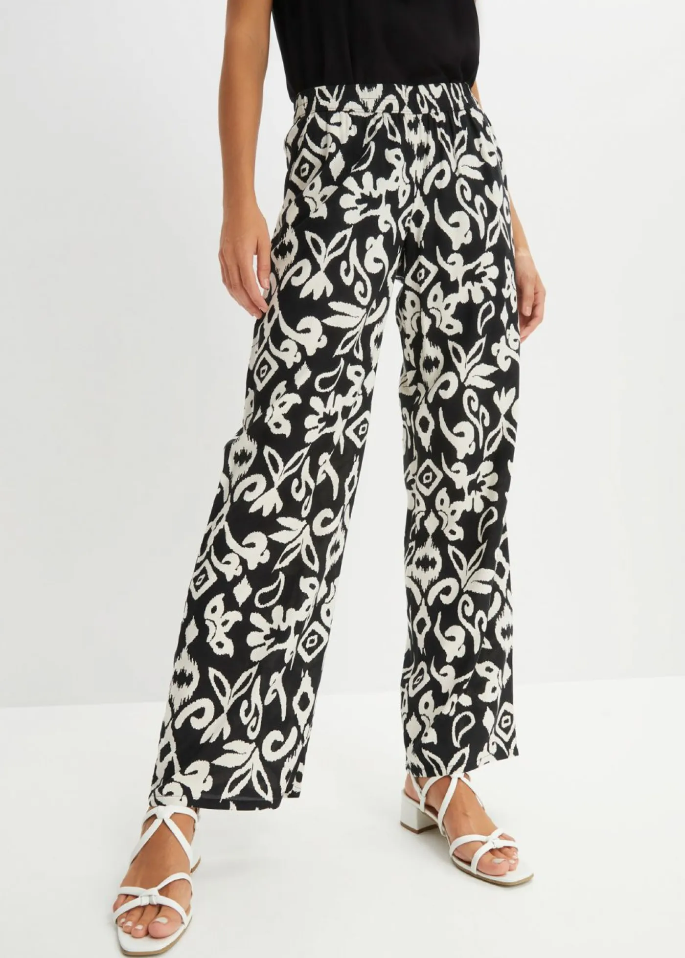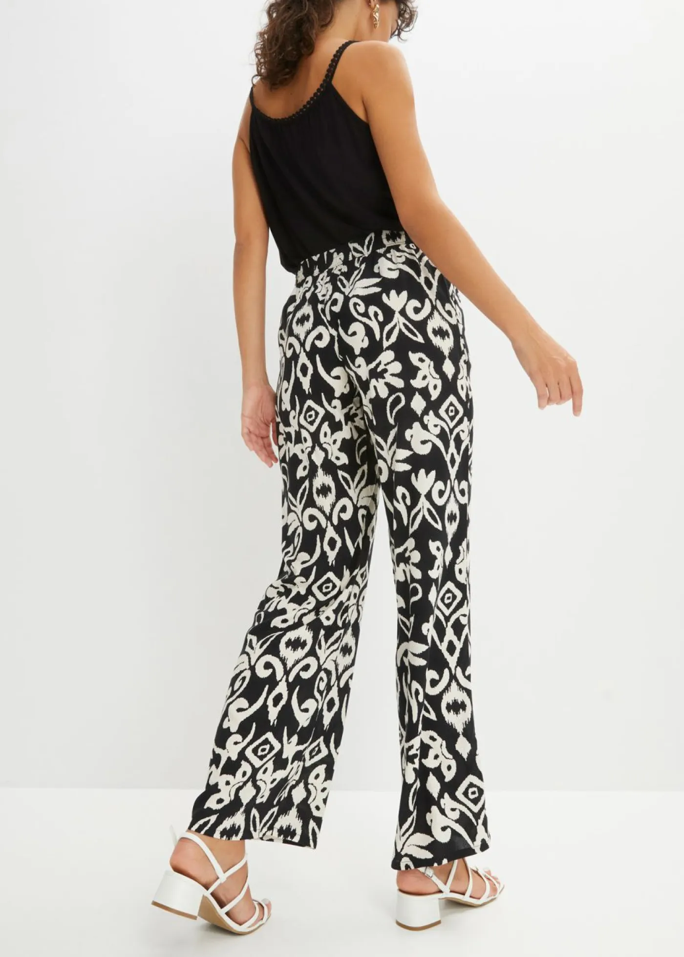 Pantalón Marlene estampado de viscosa fluida, Largo. petite