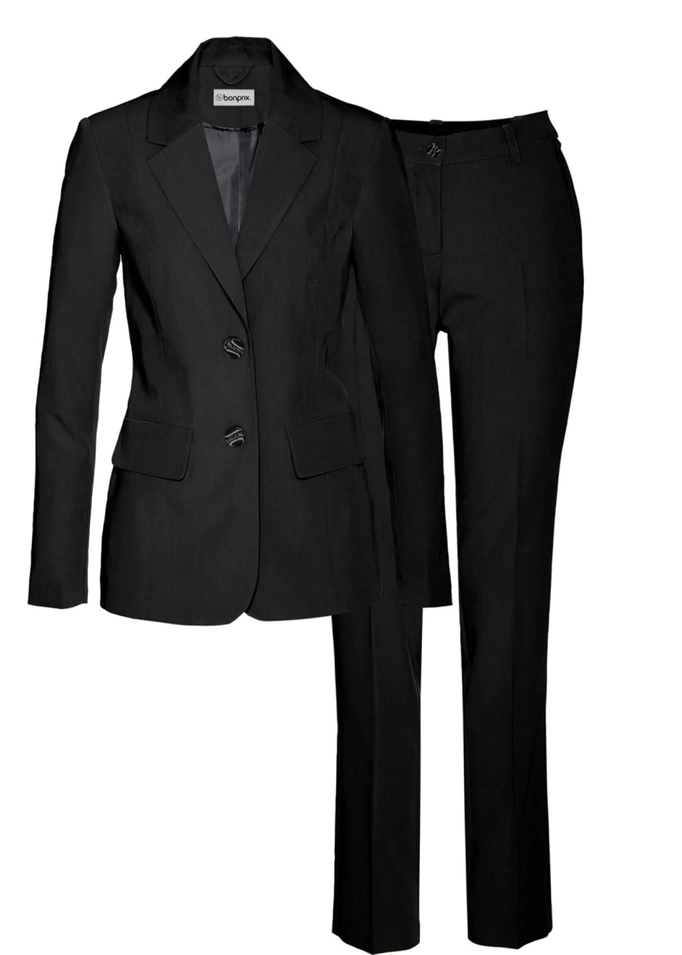 Traje de pantalón moderno con parte de viscosa. El elegante traje de pantalón se puede combinar de muchas maneras gracias a su diseño clásico. Los botones en color cuerno centran toda la atención.