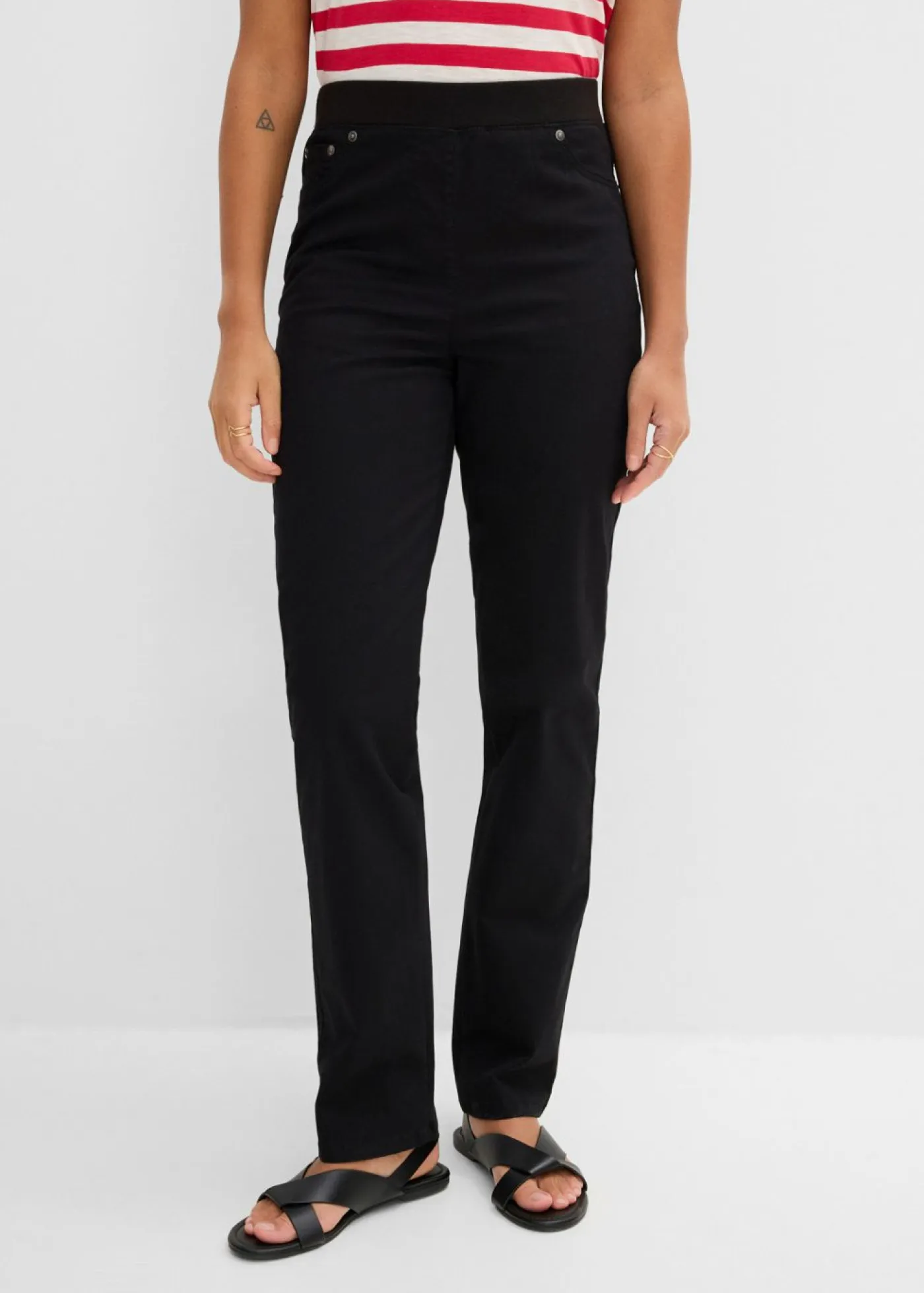 Cómodo pantalón con pernera recta, cintura de canalé y tachuelas. Largo interior de la pierna de aprox. 81 cm en talla 42. Se puede lavar a máquina.