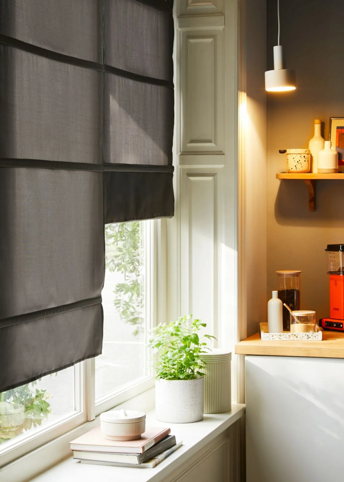 Persiana romana magnética inalámbrica con ojales de gancho. Funcional, simple y moderna: Esta persiana romana opaca con un aspecto monocromático y sutil es un juego de niños para montar en el marco de la ventana con los ojales de gancho incluidos. Montaje sin taladrar ni atornillar. Además, tiene otra ventaja: Esta persiana romana tiene cuatro túneles con barras magnéticas integradas. ¡Para que puedas acurrucarte fácilmente en la sombra romana!