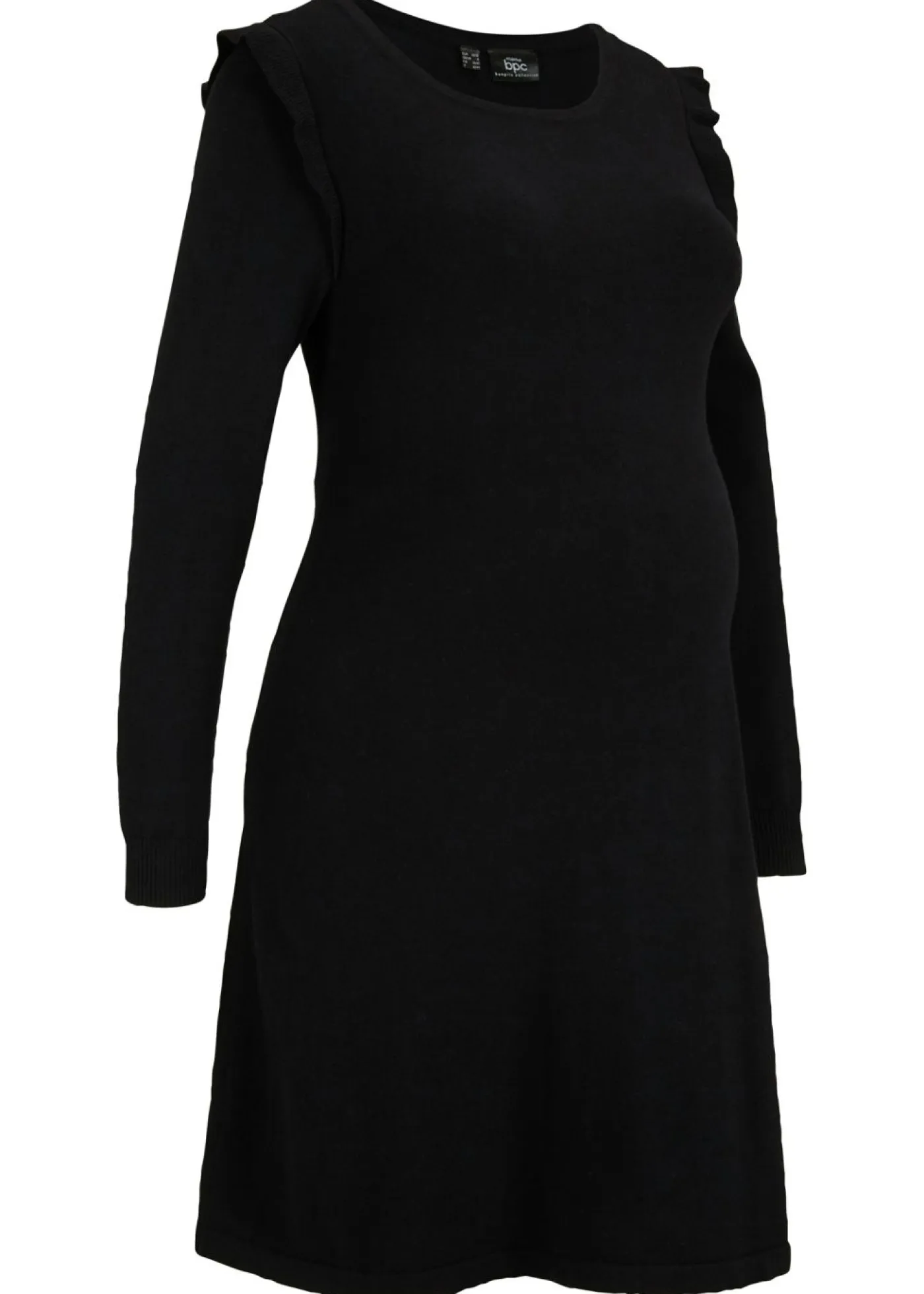 Vestido premamá de punto con inserto de volante. Este vestido premamá de punto es perfecto para cualquier ocasión. Se pueden usar diferentes accesorios para darle al vestido un aspecto más elegante o moderno. Además, se trata de compañero para el embarazo y la lactancia. Este vestido se adapta perfectamente a la figura durante el embarazo y ofrece una amplitud suficiente para las crecientes barrigas.