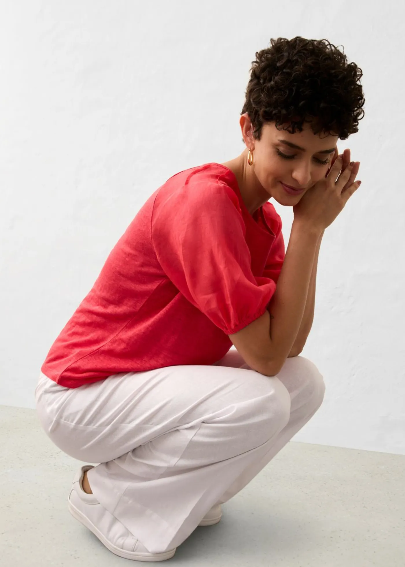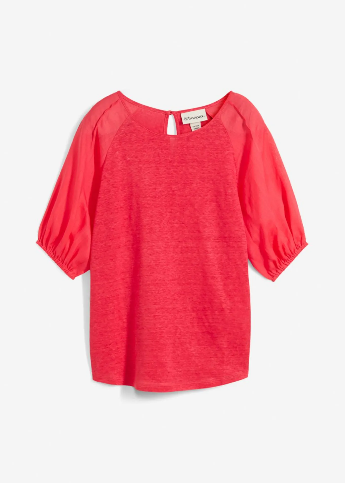 Camiseta de lino con mangas abullonadas