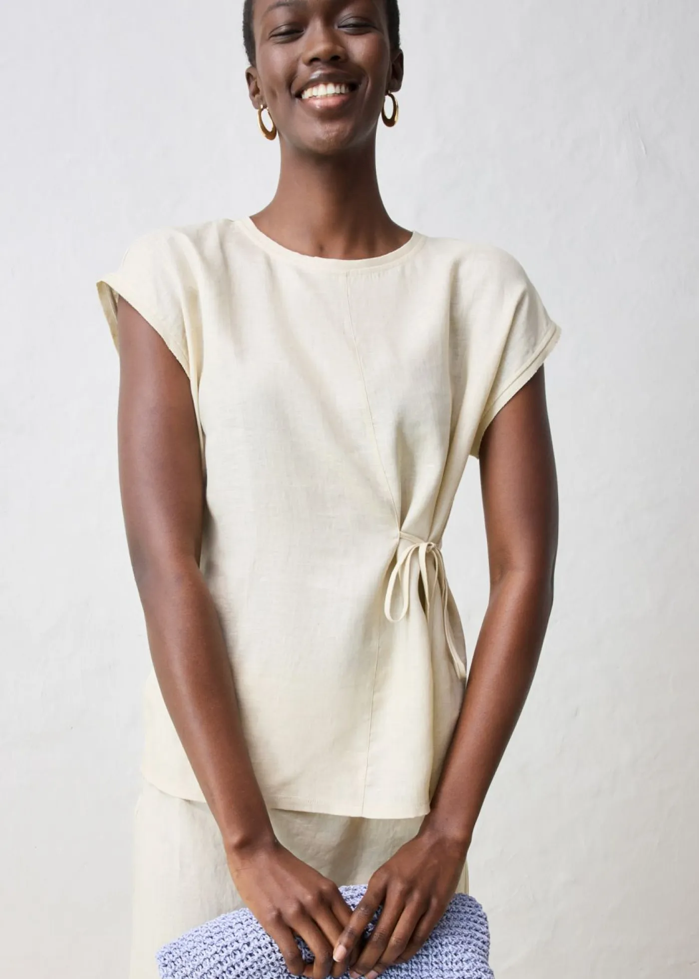 Camiseta moderna de lino de calidad con lazo en la parte delantera.