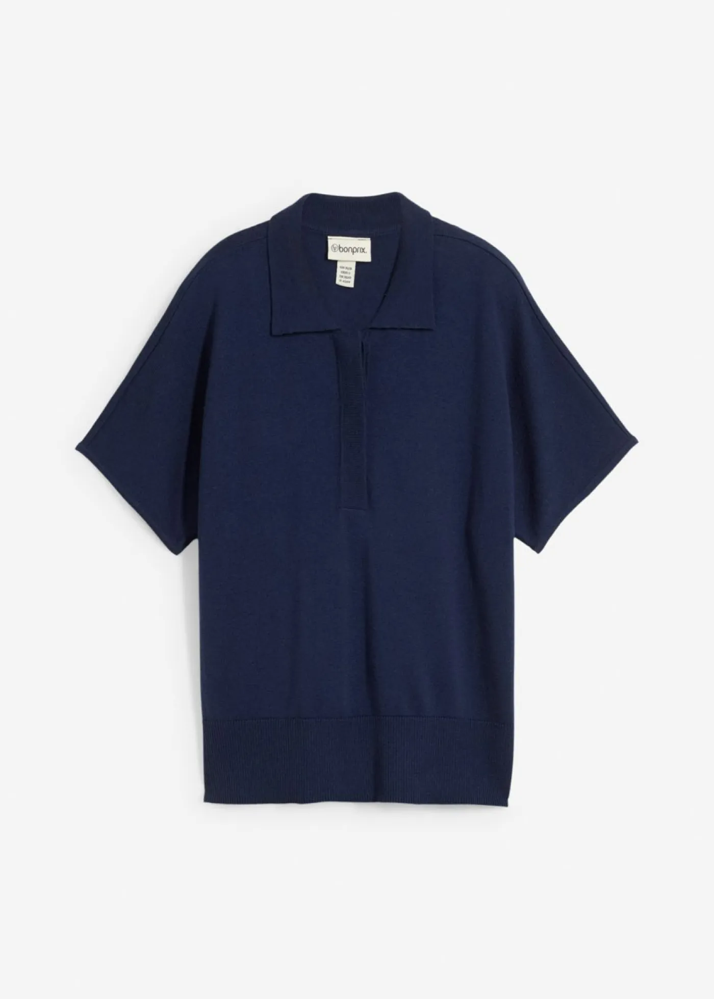 Elegante jersey de punto fino con contenido de seda y cuello tipo polo.