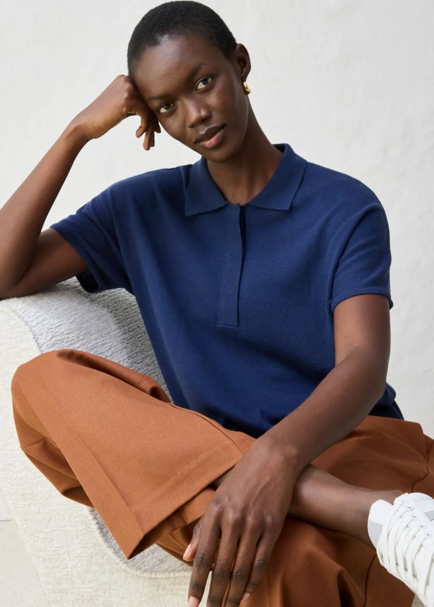 Jersey de punto fino con contenido de seda y cuello tipo polo