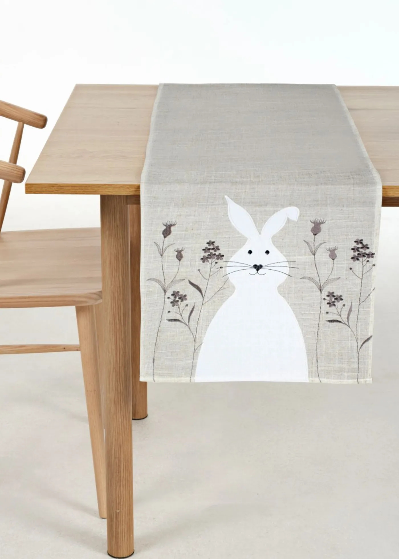 Camino de mesa con bordado de conejitos