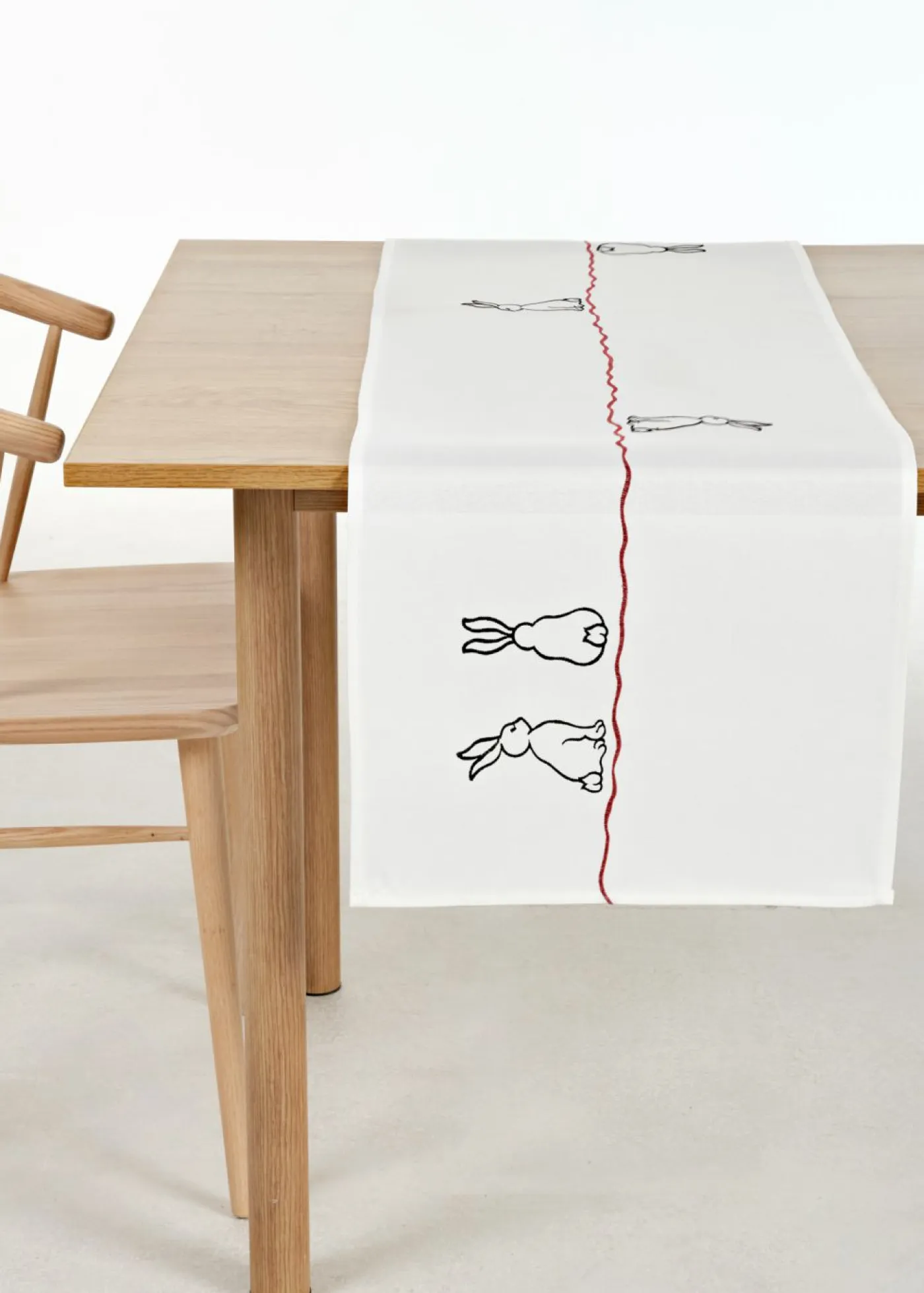 Camino de mesa con bordado de conejitos
