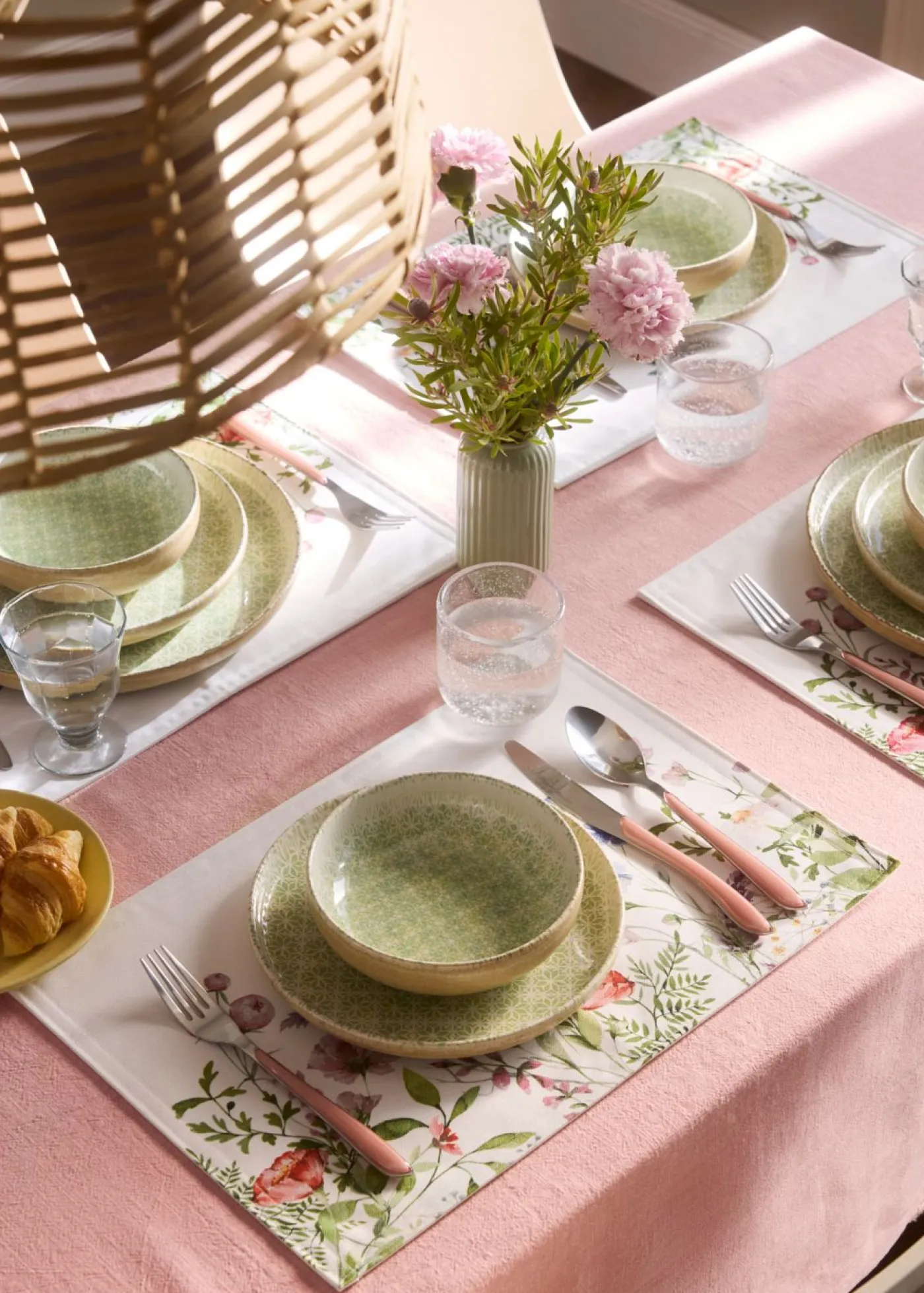 Manteles individuales con motivos primaverales.
