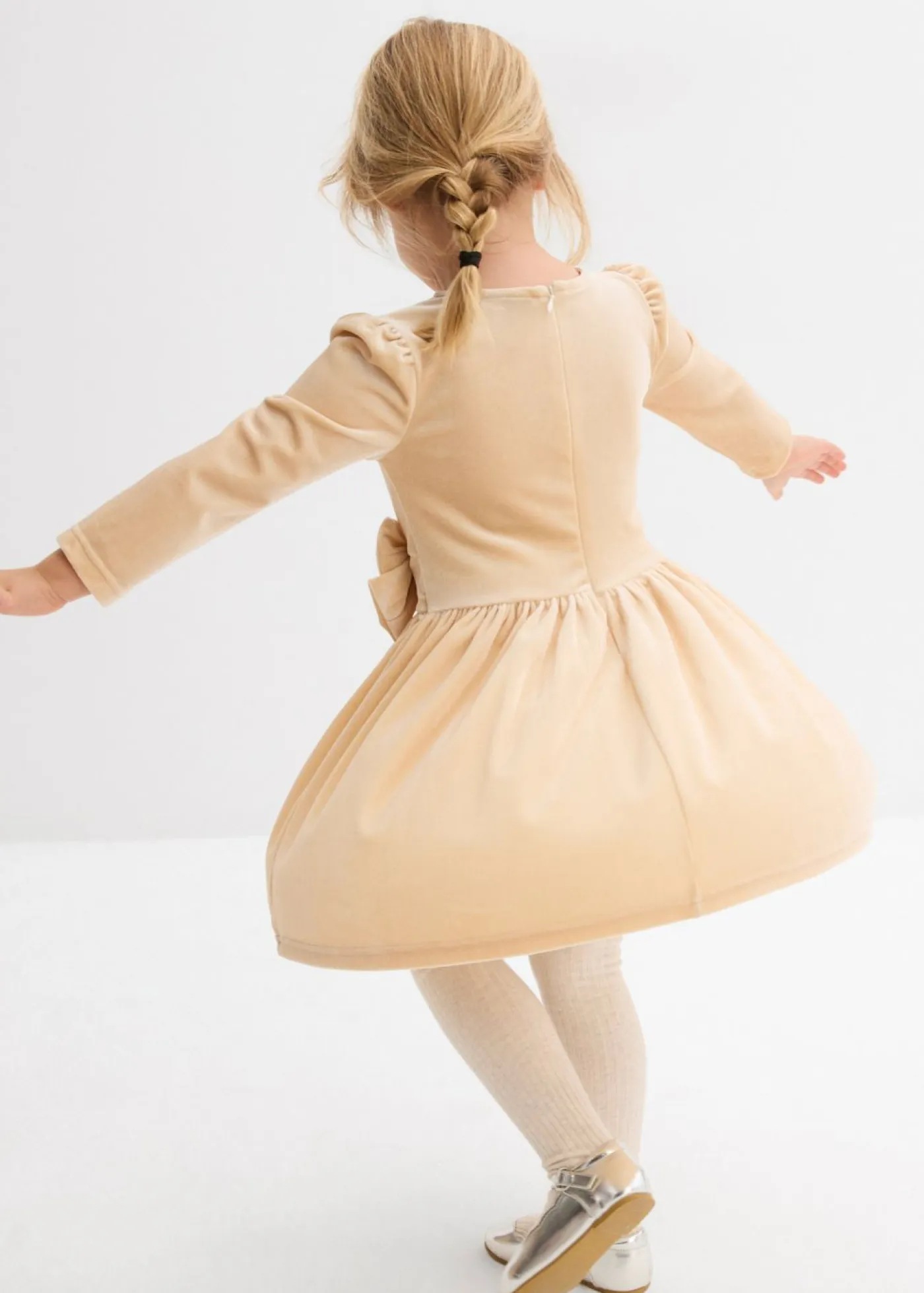 Bonito vestido de terciopelo con un gran lazo para niñas.