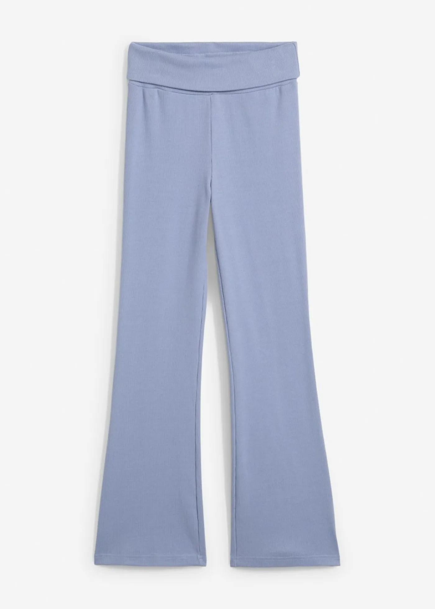 Elegante pantalón de punto acanalado con perneras acampanadas y cinturilla cómoda para niñas.