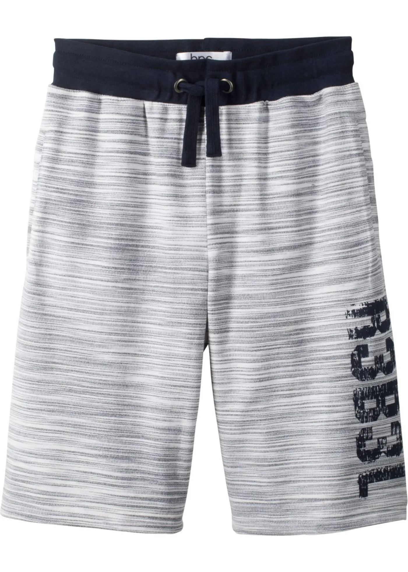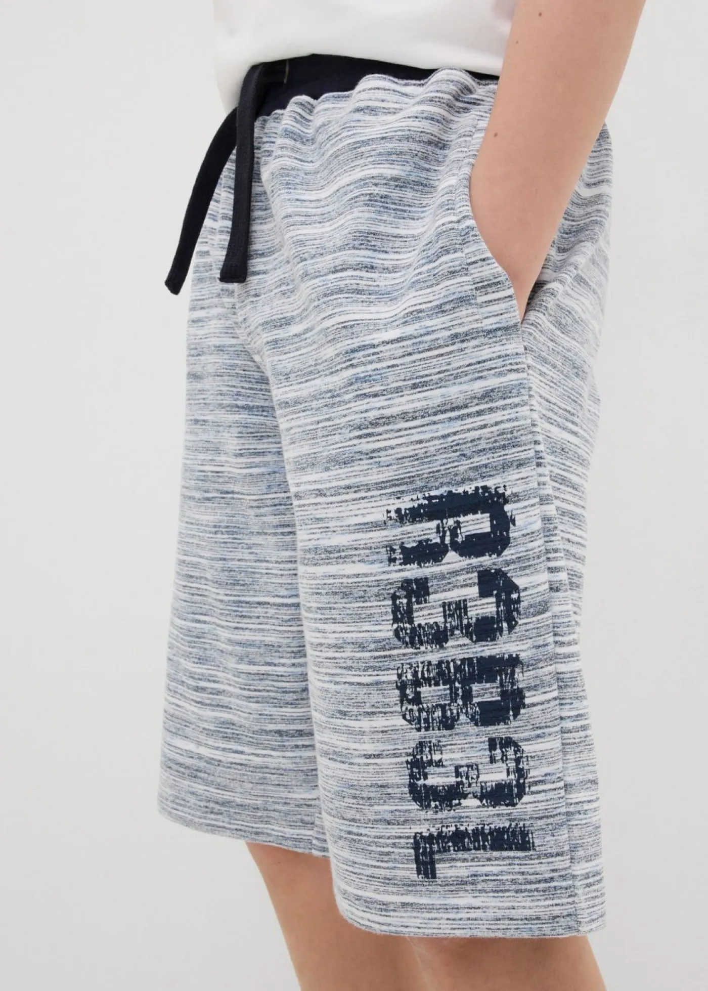 Elegante bermuda de chándal con detalles en contraste. Moderna bermuda de chándal con cinturilla elástica flexible en contraste y cordones. Además, la bermuda presenta un estampado en el lateral izquierdo y bolsillos laterales.