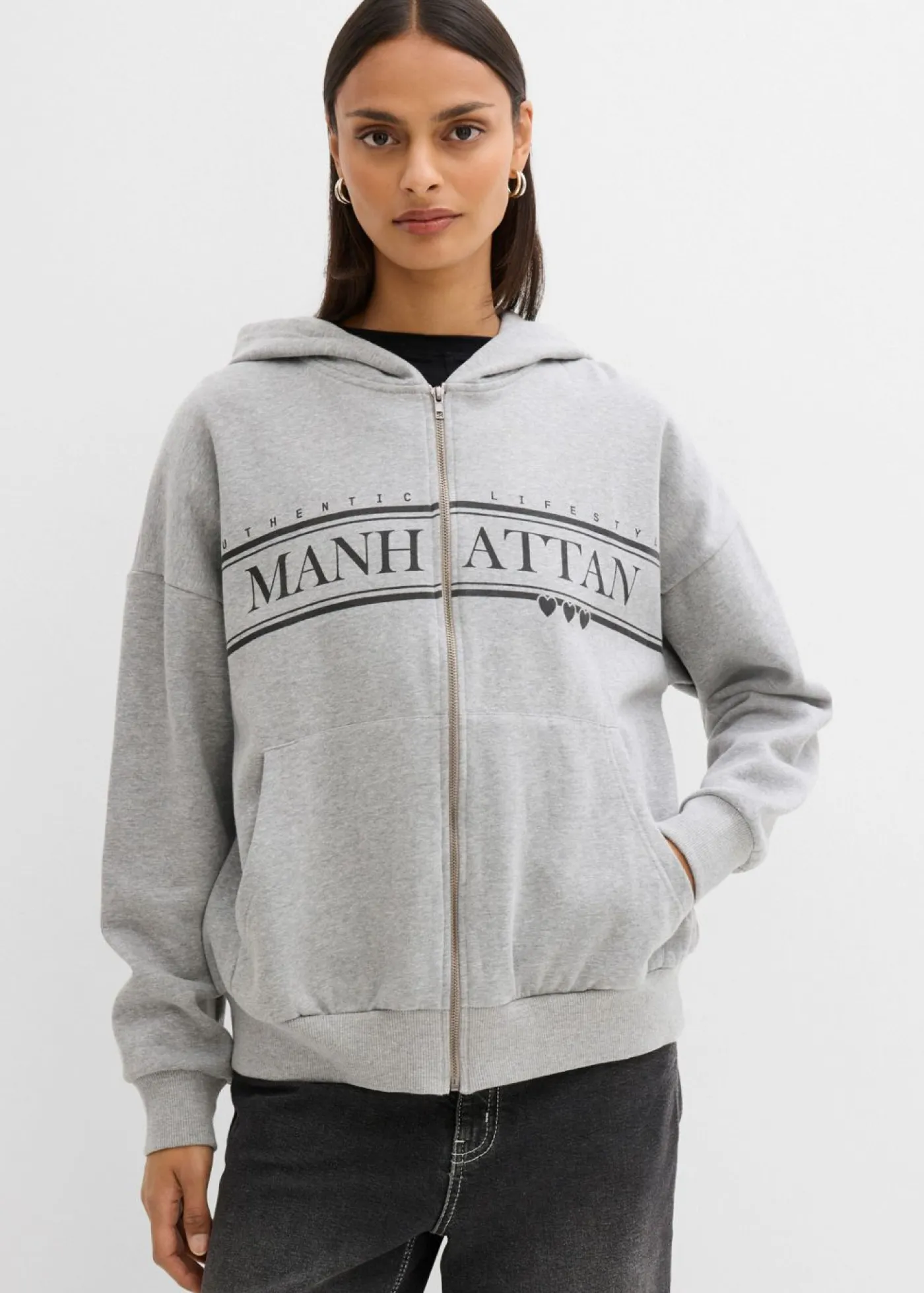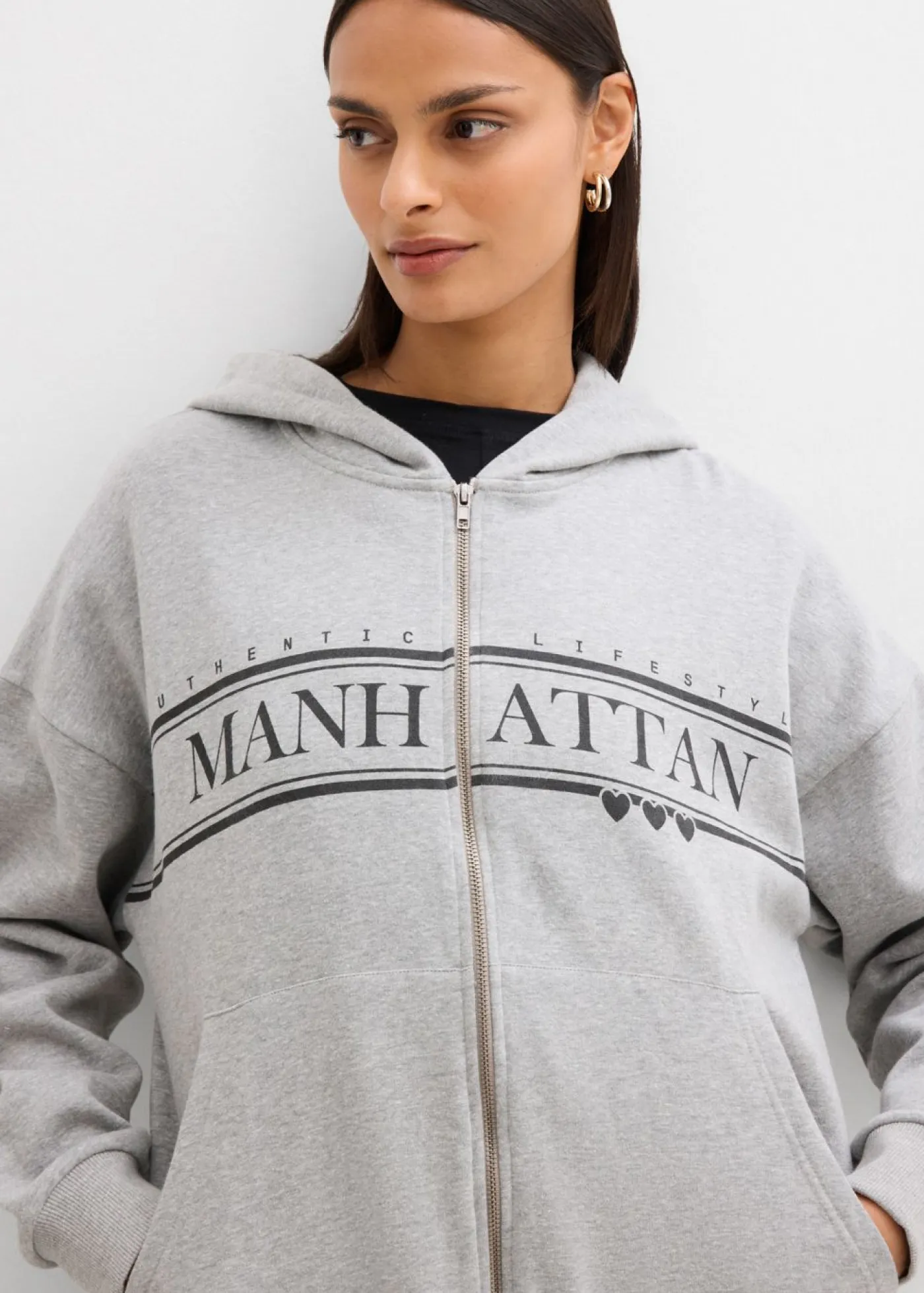 Moderna chaqueta de chándal oversize con capucha y estampado.
