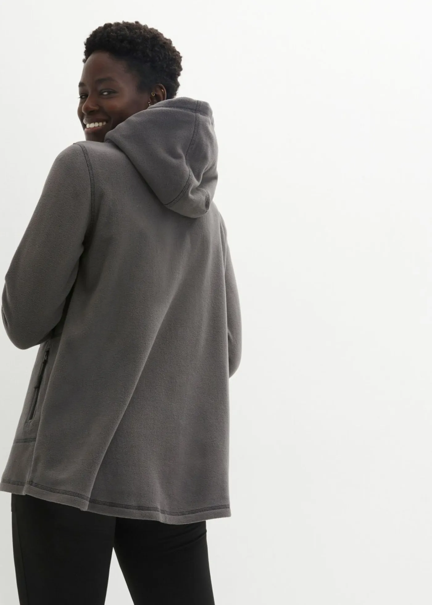 Chaqueta larga polar con corte en A. Largo total de aprox. 76 cm en talla 40/42.