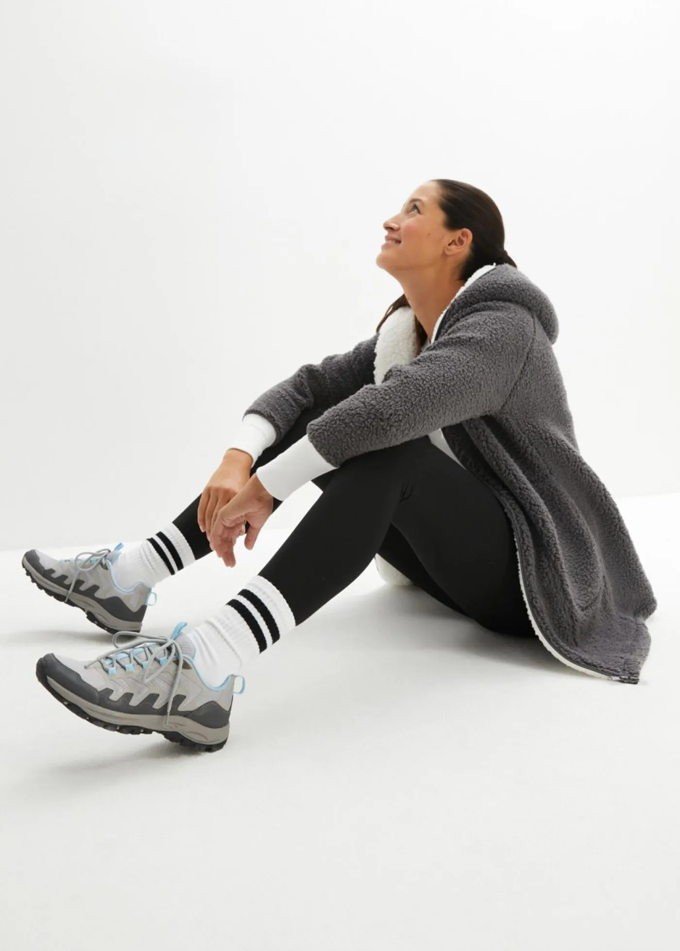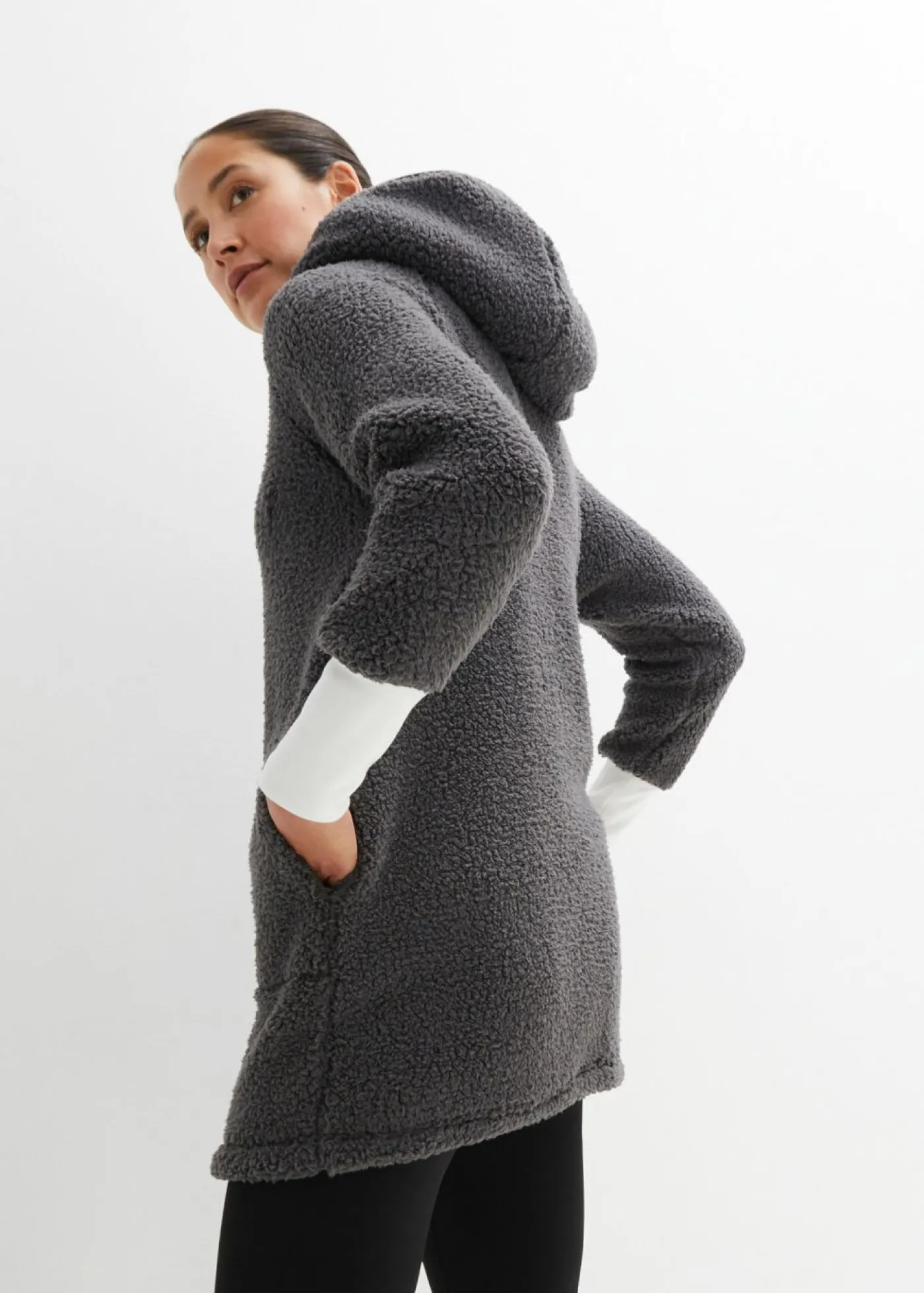Abrigo polar oversize con bolsillos y cremalleras de doble sentido, que también cierra la capucha. Largo de aprox. 82 cm en talla 40/42. Se puede lavar a máquina.