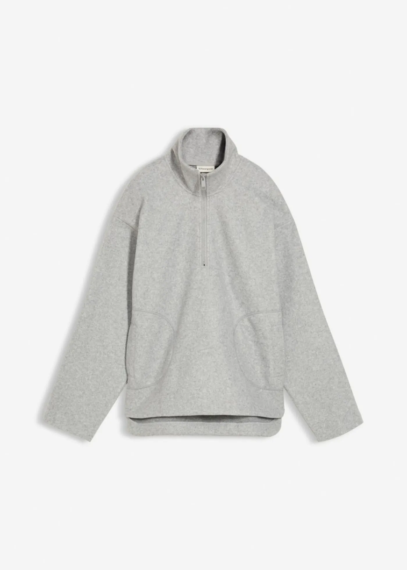 Jersey holgado con cuello alto y cremallera corta. Hombros caídos y bolsillos laterales. Largo de aprox. 74 cm en talla 40/42. Se puede lavar a máquina.