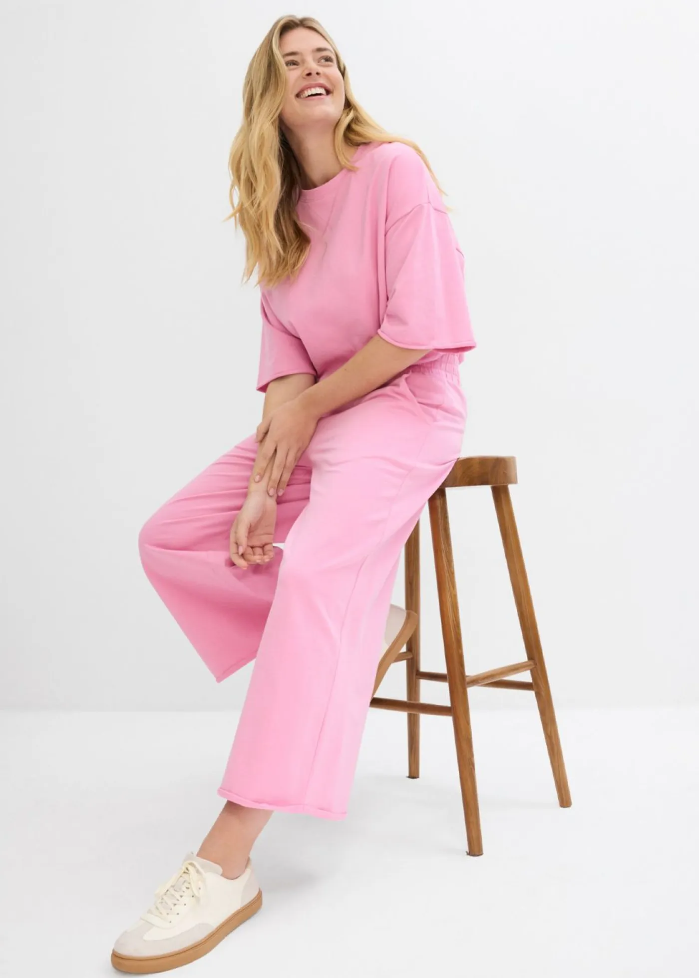 Pantalón de chándal hasta el tobillo con pernera ancha y cinturilla cómoda. Largo interior de la pierna de aprox. 64,5 cm en talla 40/42. Se puede lavar a máquina.