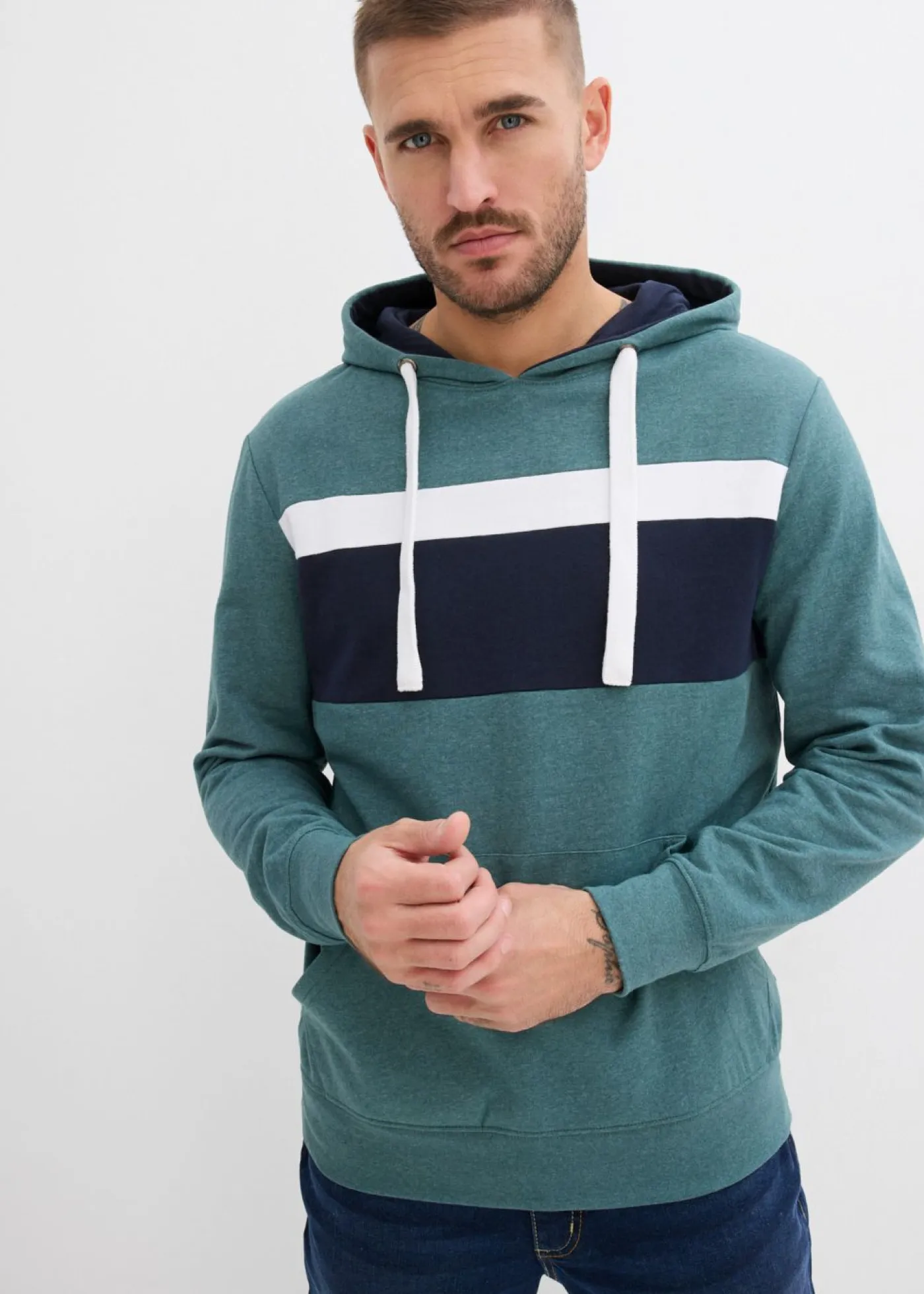 Sudadera moderna con capucha, cintas y cepillado suave en el interior.