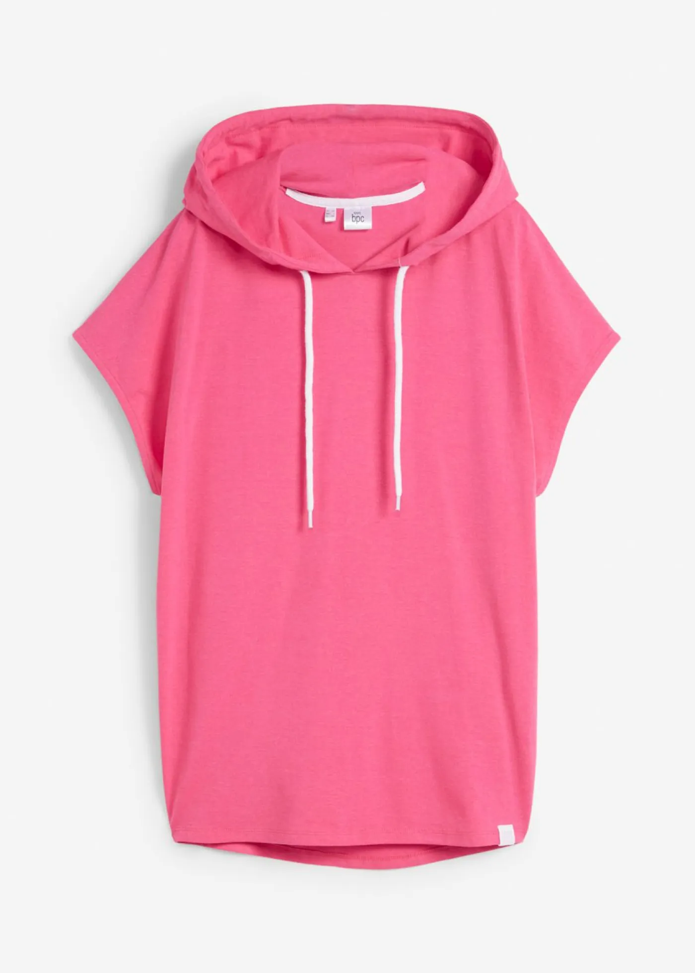 Cómoda sudadera con capucha, mangas cortas y corte ancho. Sin mangas y con capucha. Largo de aprox. 74 cm en talla 40/42. Se puede lavar a máquina.